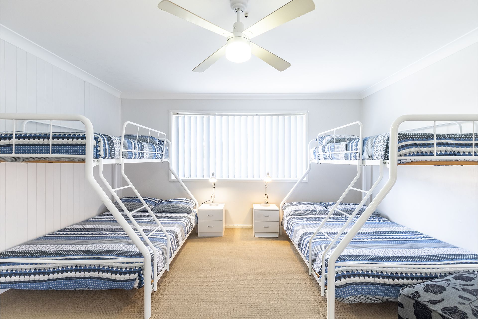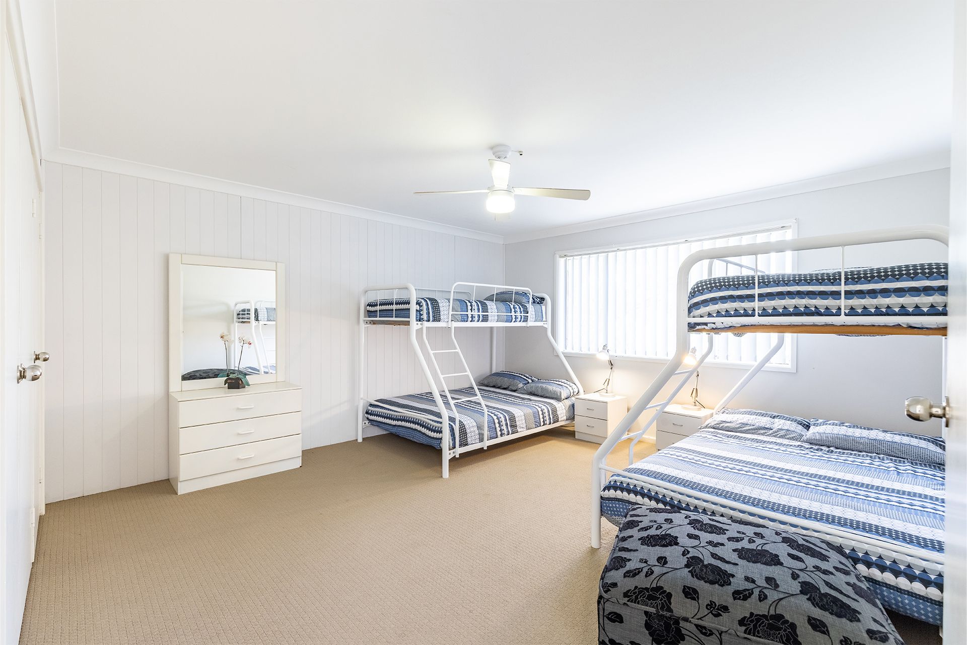 Bedroom 2 (upstairs) - 2 x Trio Bunks (double underneath/ single above) + Ceiling Fan