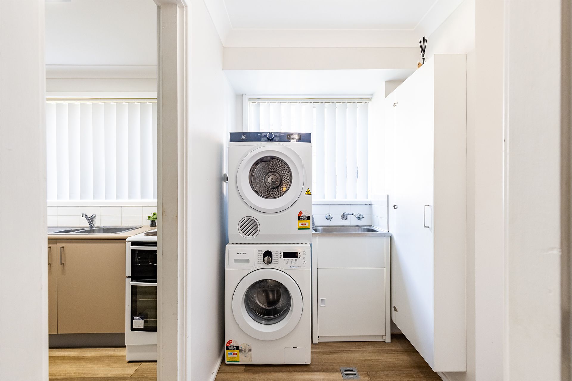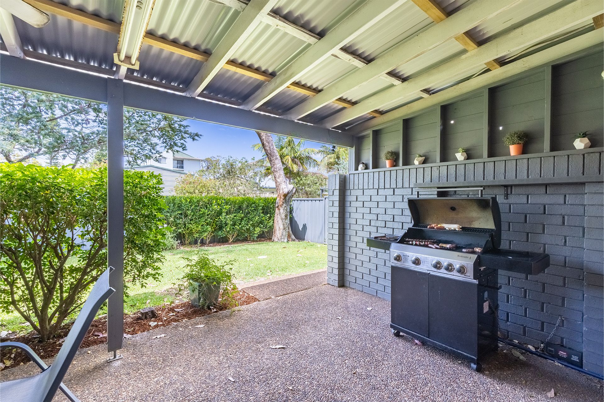 Step outside onto your private undercover area - a perfect spot to start your day with a cup of coffee, or BBQ under the stars. Your little ones will appreciate the child-friendly surroundings with the cycle pathways that flow between all of Little Beach and a close-by playground located on the waterfront. The property has an internal laundry with a front loader washing machine and dryer and provides two car spaces.
