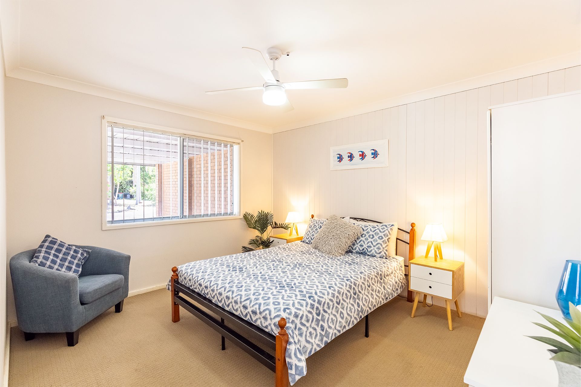 Bedroom 3 (upstairs) - Queen Bed + Ceiling Fan