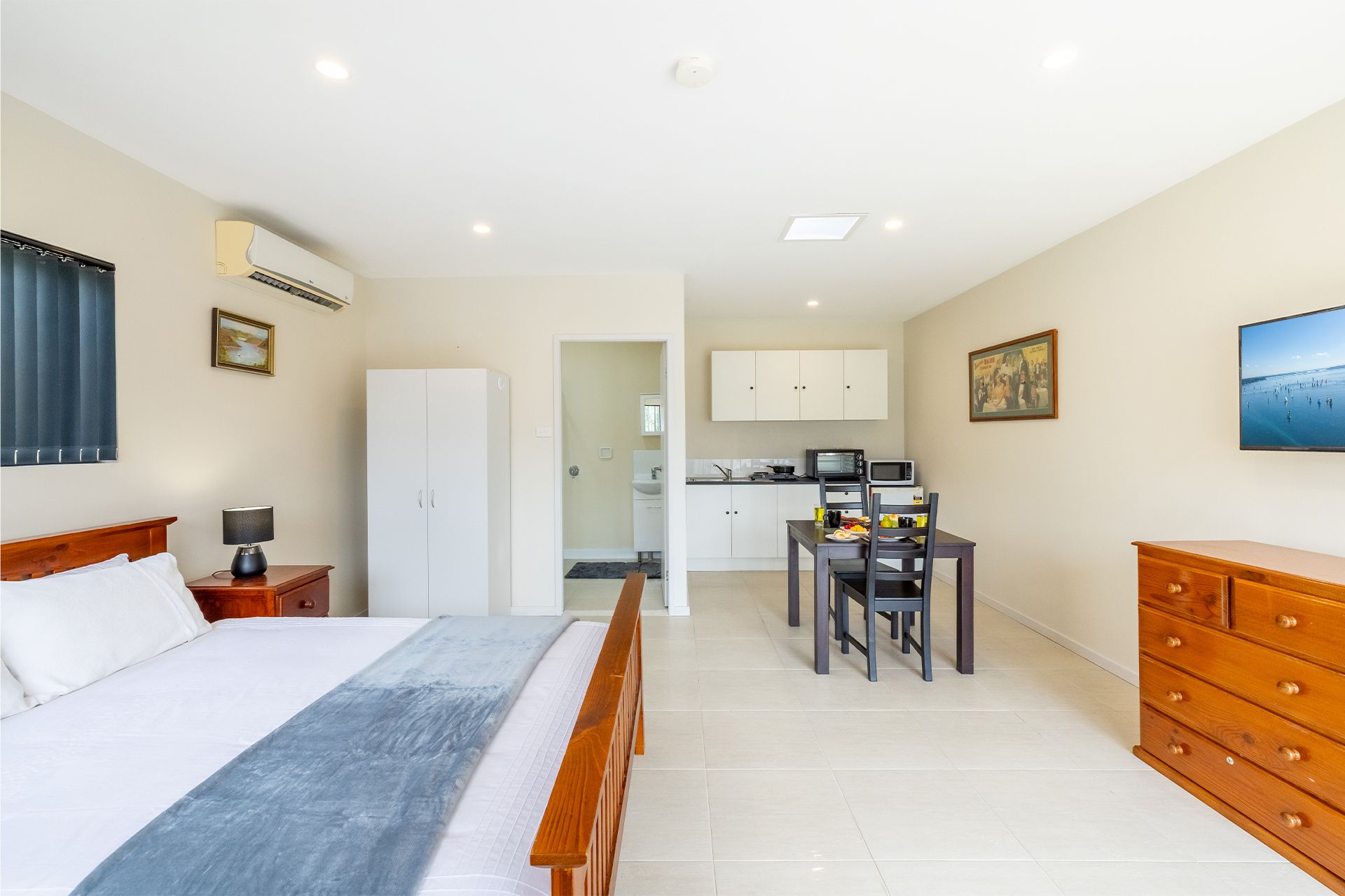 As soon as you enter via the side entrance of the property, you will be amazed at the relaxed, open space and inclusions that are offered in this studio apartment. The kitchen provides a bar fridge with small freezer, two portable hot plates, microwave, and Convection Oven. The Grafton has a comfortable Queen bed, split system air conditioner, Smart Tv and Wi-Fi. There is also a renovated bathroom with a shower, toilet, and vanity provided.