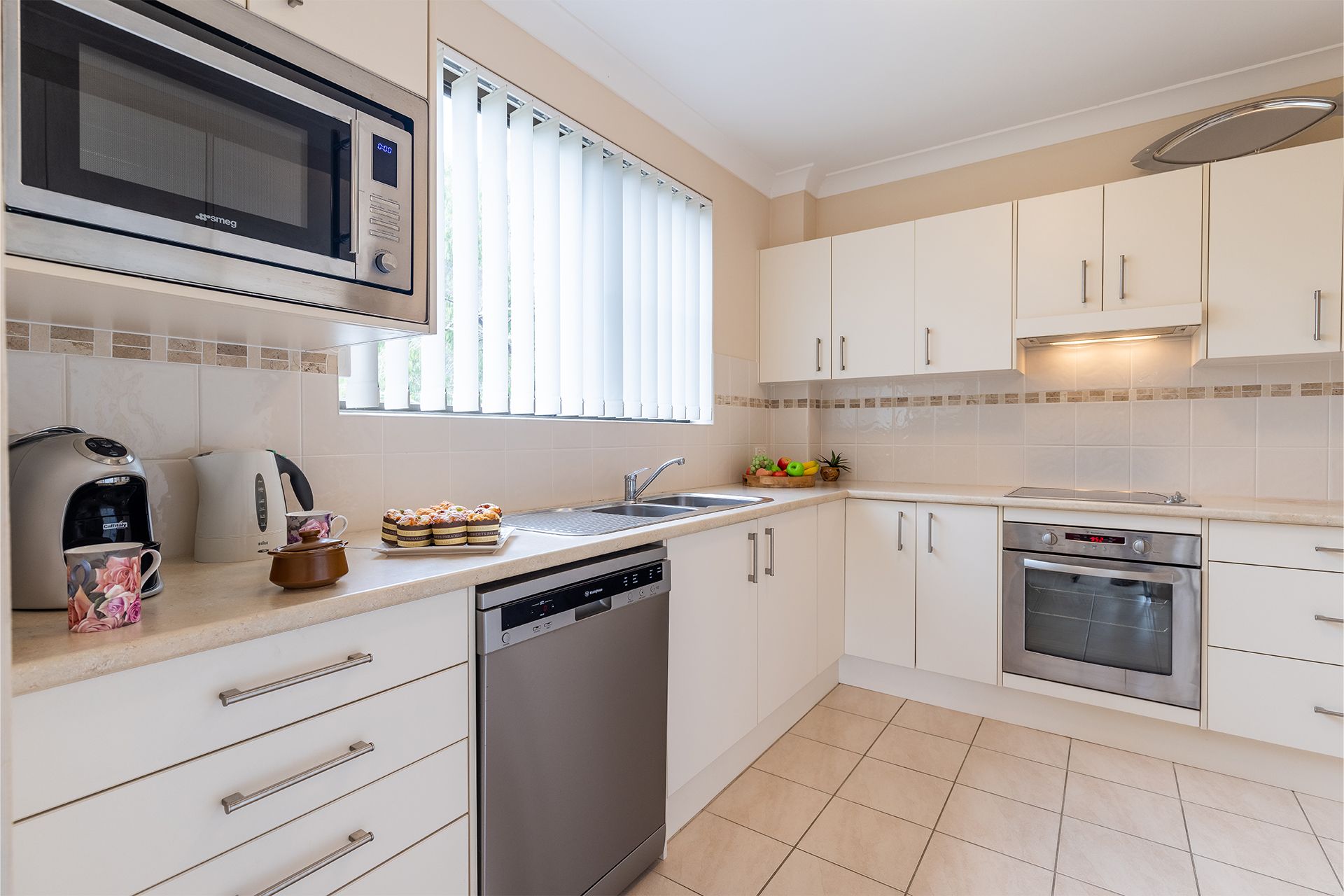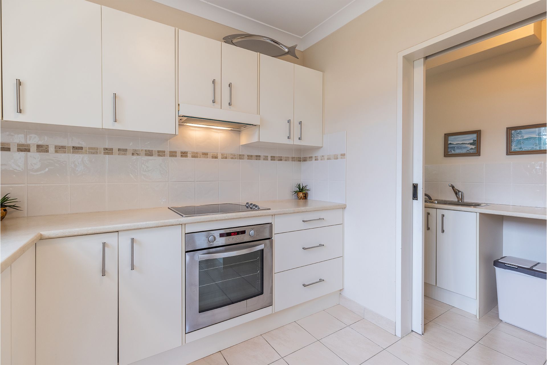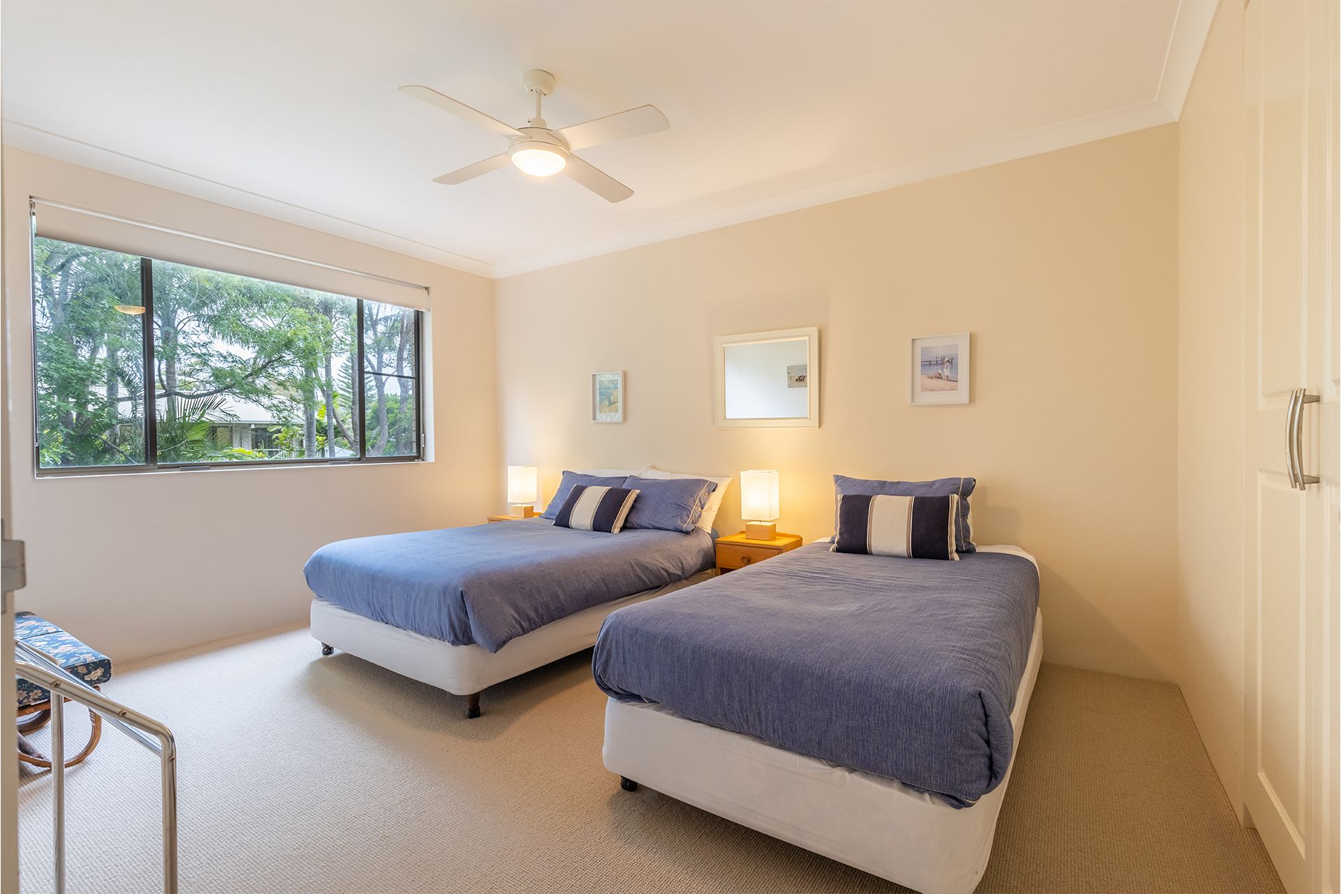 This two-bedroom unit is tastefully furnished with a cane lounge and dining suite, flat screen TV and DVD player, ceiling fan plus glass sliding doors that access the L-shaped covered balcony with a Weber Q gas BBQ and outdoor dining for two. The kitchen is fully equipped with complete cooking facilities including an under-bench oven, stove top, microwave, dishwasher, fridge/freezer, and Caffitaly Coffee machine.