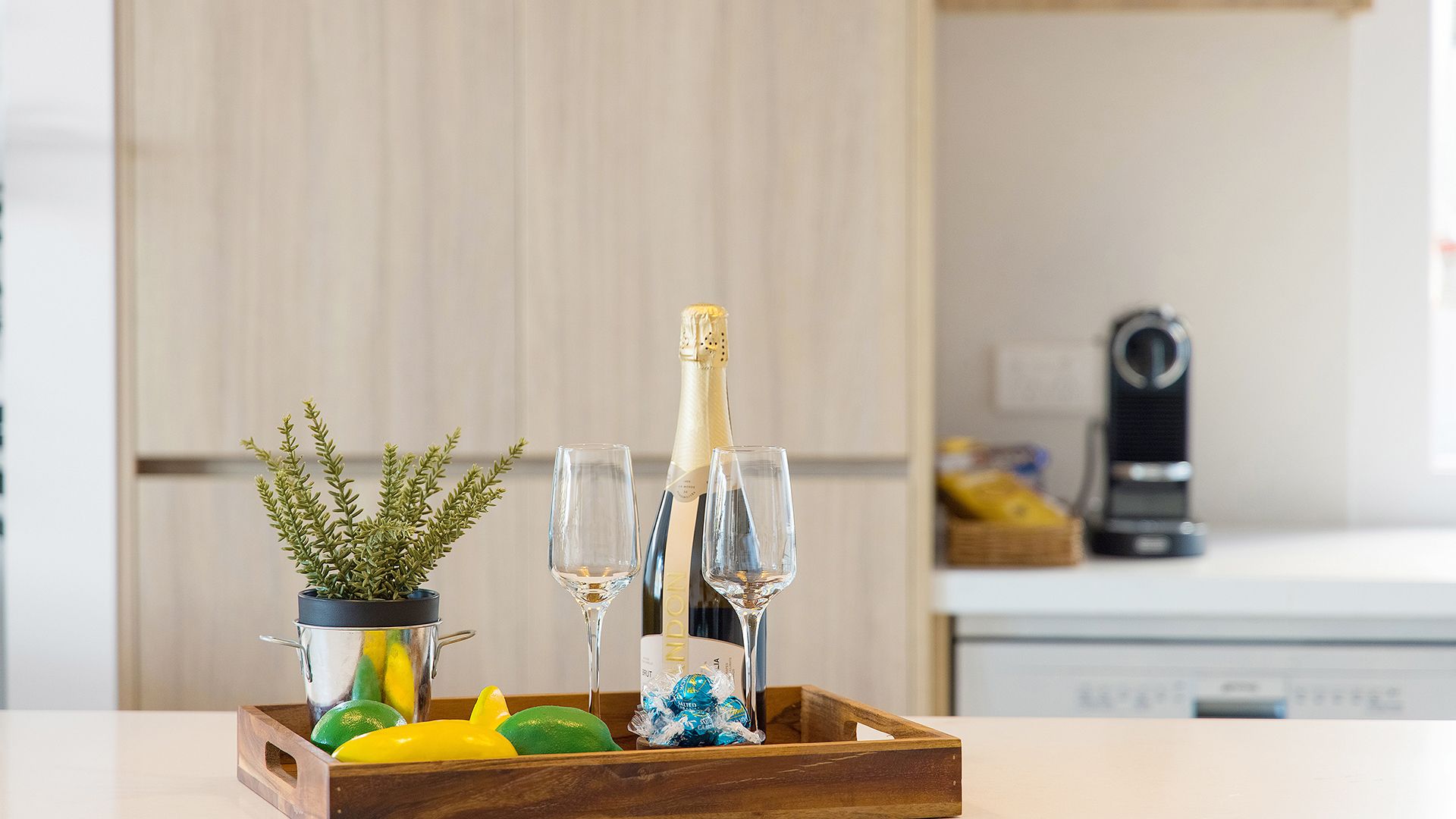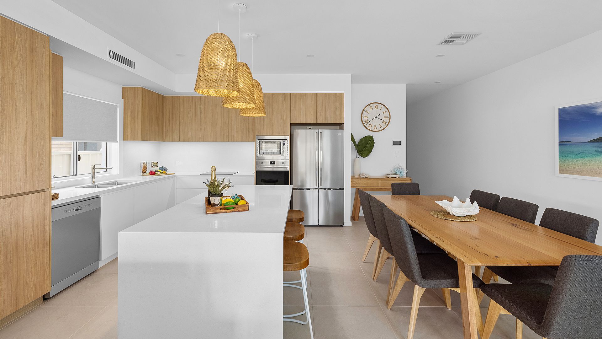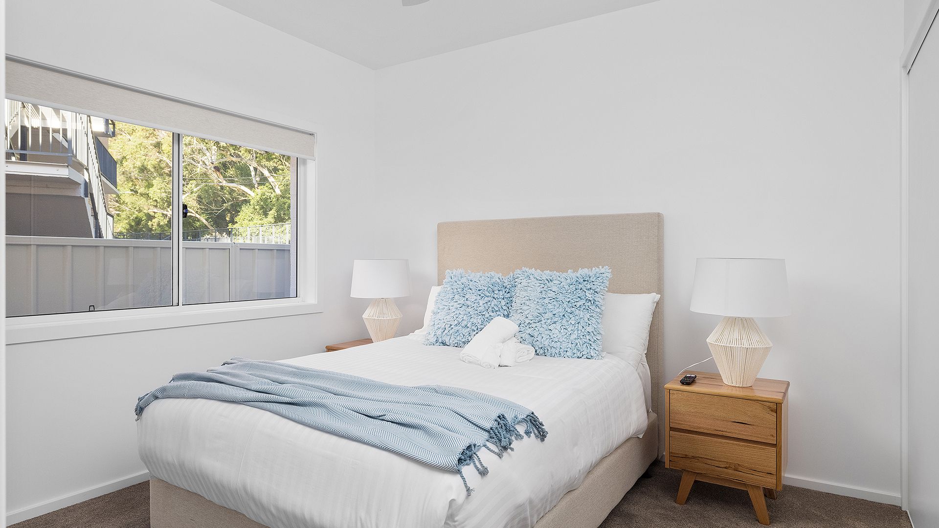 Hideaway 2 prioritises comfort and convenience with a plethora of amenities such as air ducted conditioning throughout, unlimited Wi-Fi, electric blinds in the living areas, multiple big screen smart TVs, a child-friendly outdoor area with enclosed yard and garden, and a fully equipped, modern kitchen complete with a DeLonghi coffee machine, dishwasher, microwave oven, induction cooktop and family size fridge/ freezer. Luxuries continue with a secure large single garage, and a gas BBQ set on the balcony for alfresco dining.
