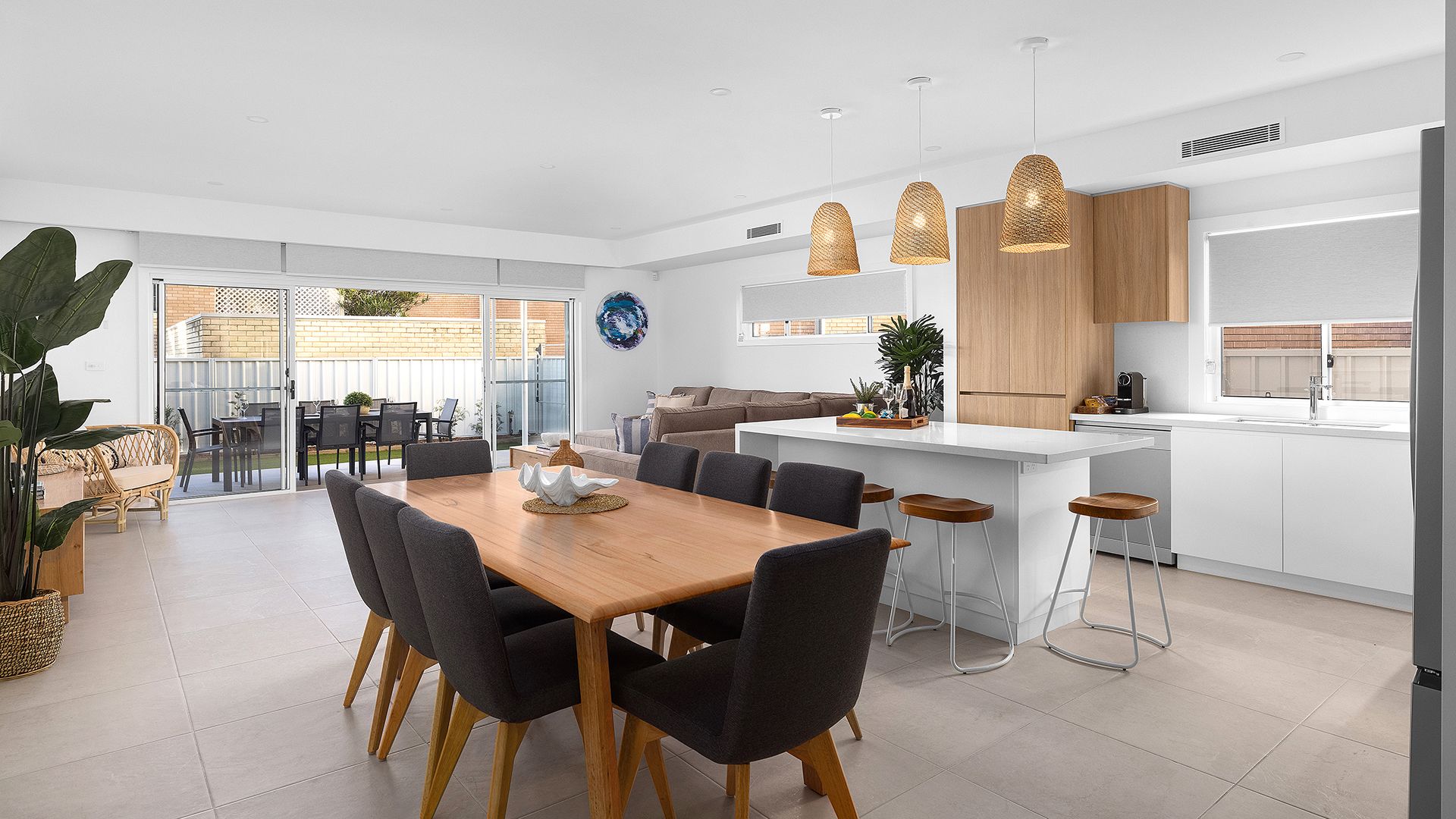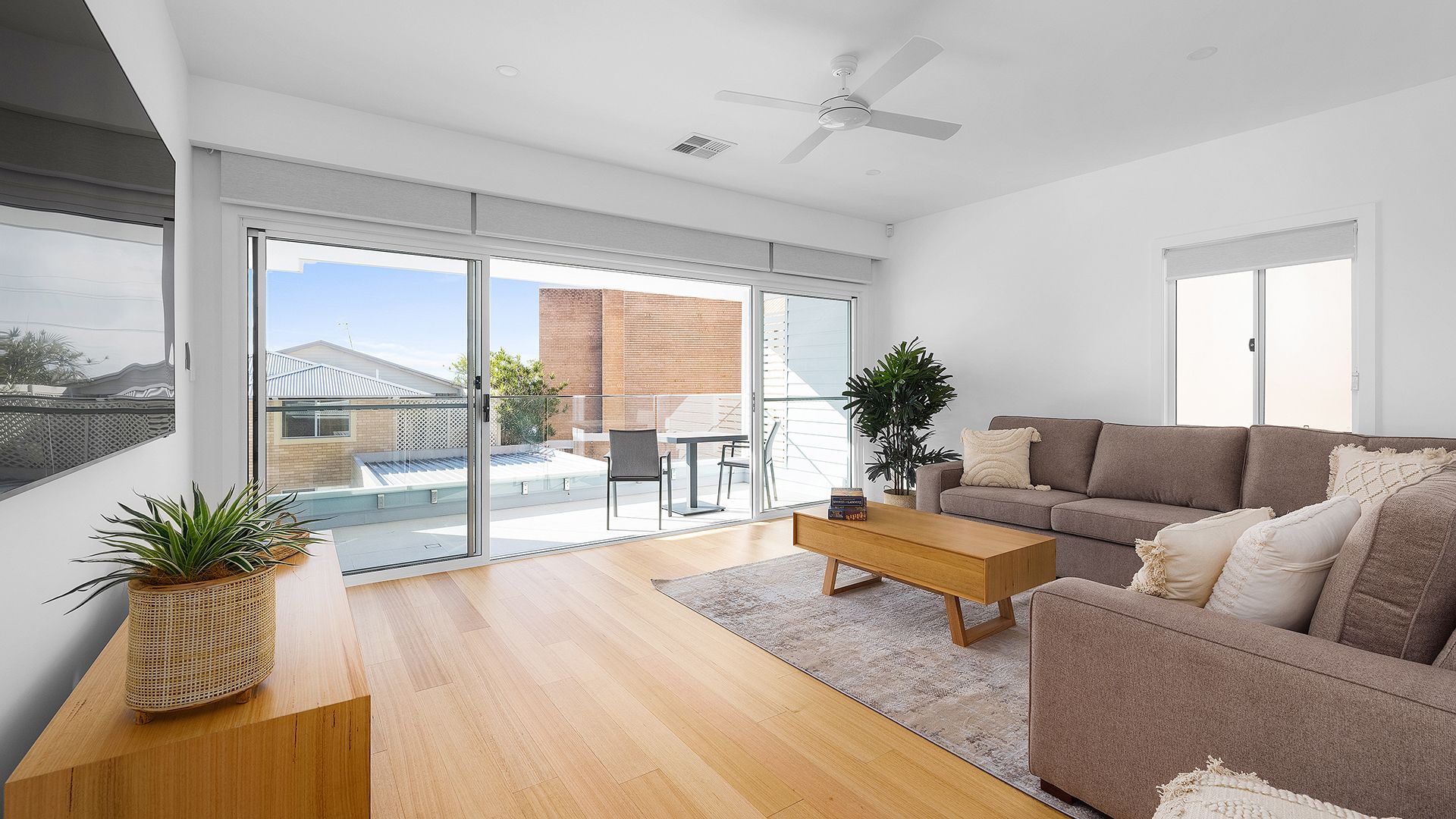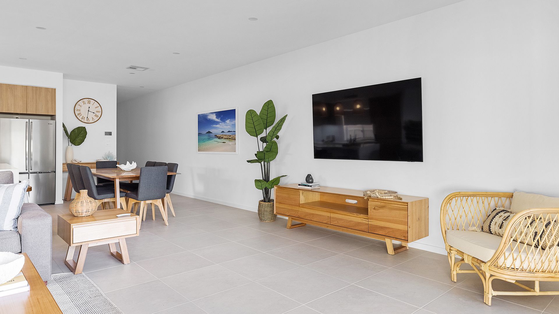 Hideaway 2 prioritises comfort and convenience with a plethora of amenities such as air ducted conditioning throughout, unlimited Wi-Fi, electric blinds in the living areas, multiple big screen smart TVs, a child-friendly outdoor area with enclosed yard and garden, and a fully equipped, modern kitchen complete with a DeLonghi coffee machine, dishwasher, microwave oven, induction cooktop and family size fridge/ freezer. Luxuries continue with a secure large single garage, and a gas BBQ set on the balcony for alfresco dining.