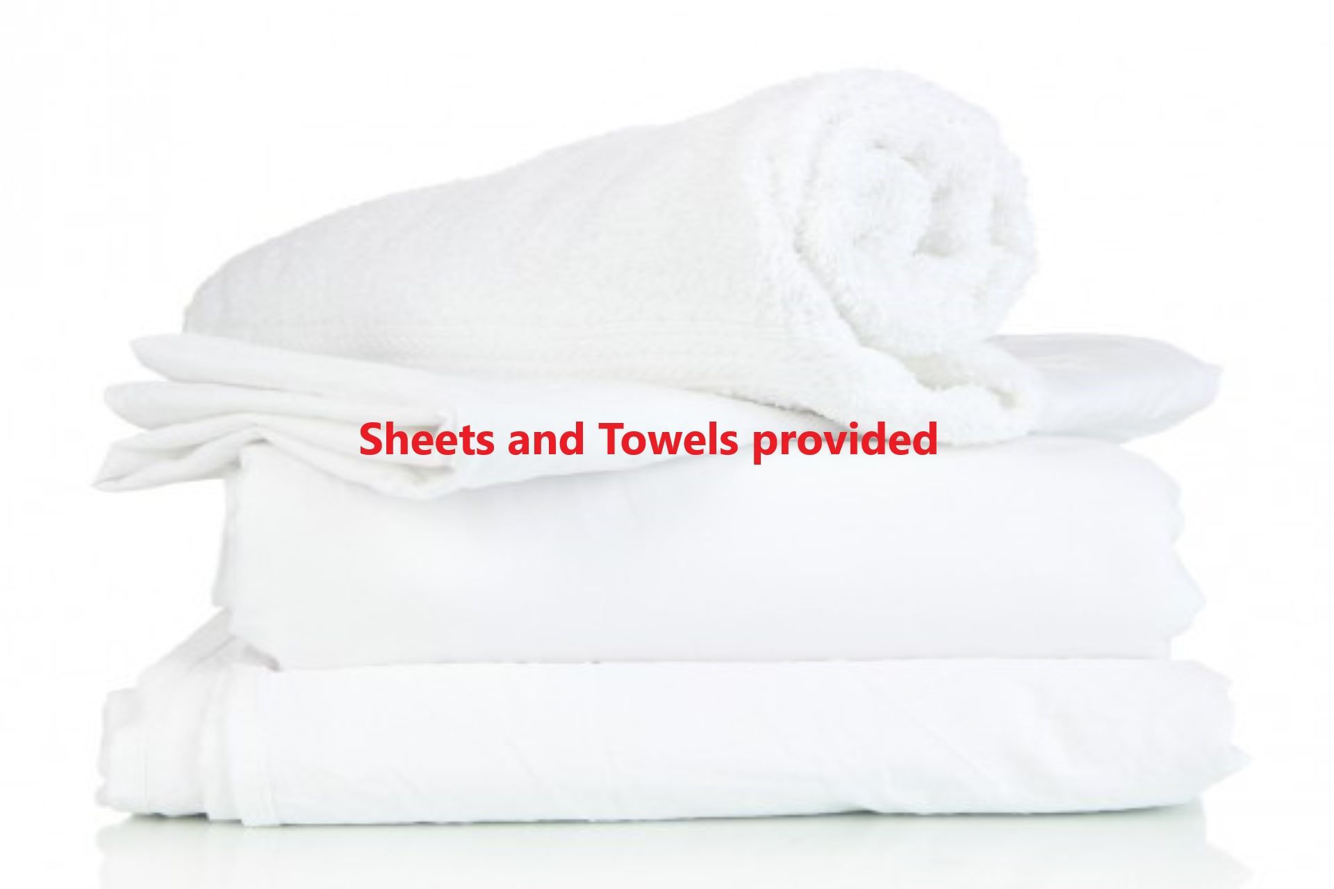 This property does include sheets and bath towels, please bring your own beach towels. The property also provides pillows, blankets, and quilts.