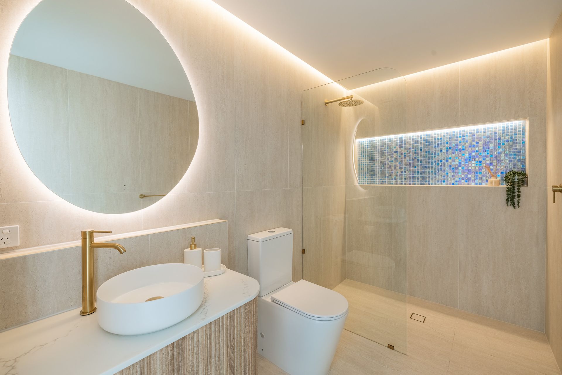 A modern fully equipped kitchen adorned with top-tier appliances, incite your inner chef to cook up a feast on the gas cooktop and enjoy the luxury of a dishwasher and beautiful stone benches. After your meals, retreat to the cosy lounge featuring a big screen TV and a host of interactive entertainment options.