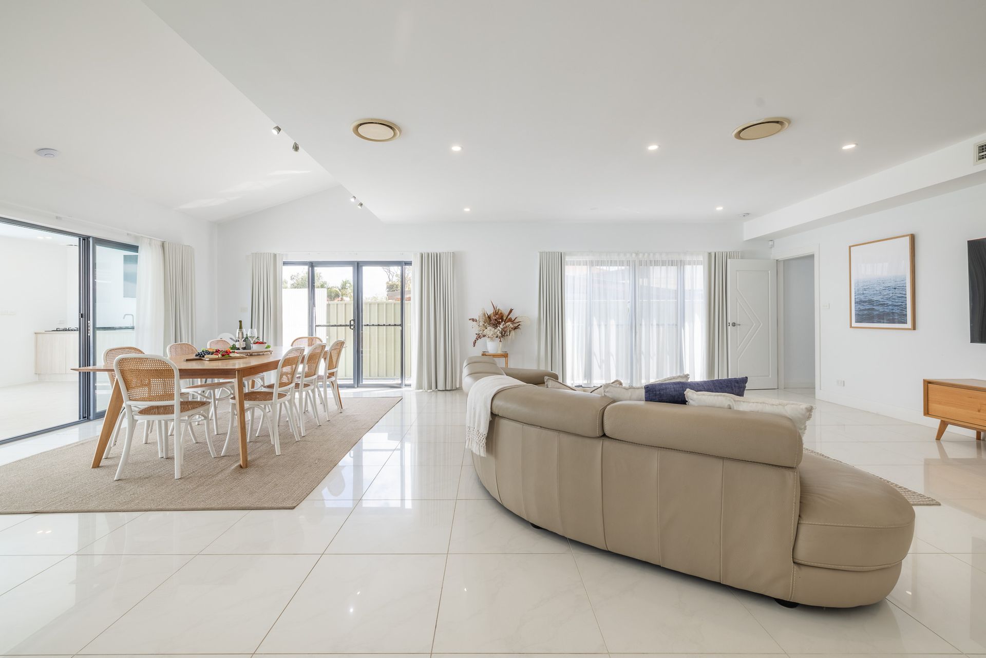 A modern fully equipped kitchen adorned with top-tier appliances, incite your inner chef to cook up a feast on the gas cooktop and enjoy the luxury of a dishwasher and beautiful stone benches. After your meals, retreat to the cosy lounge featuring a big screen TV and a host of interactive entertainment options.