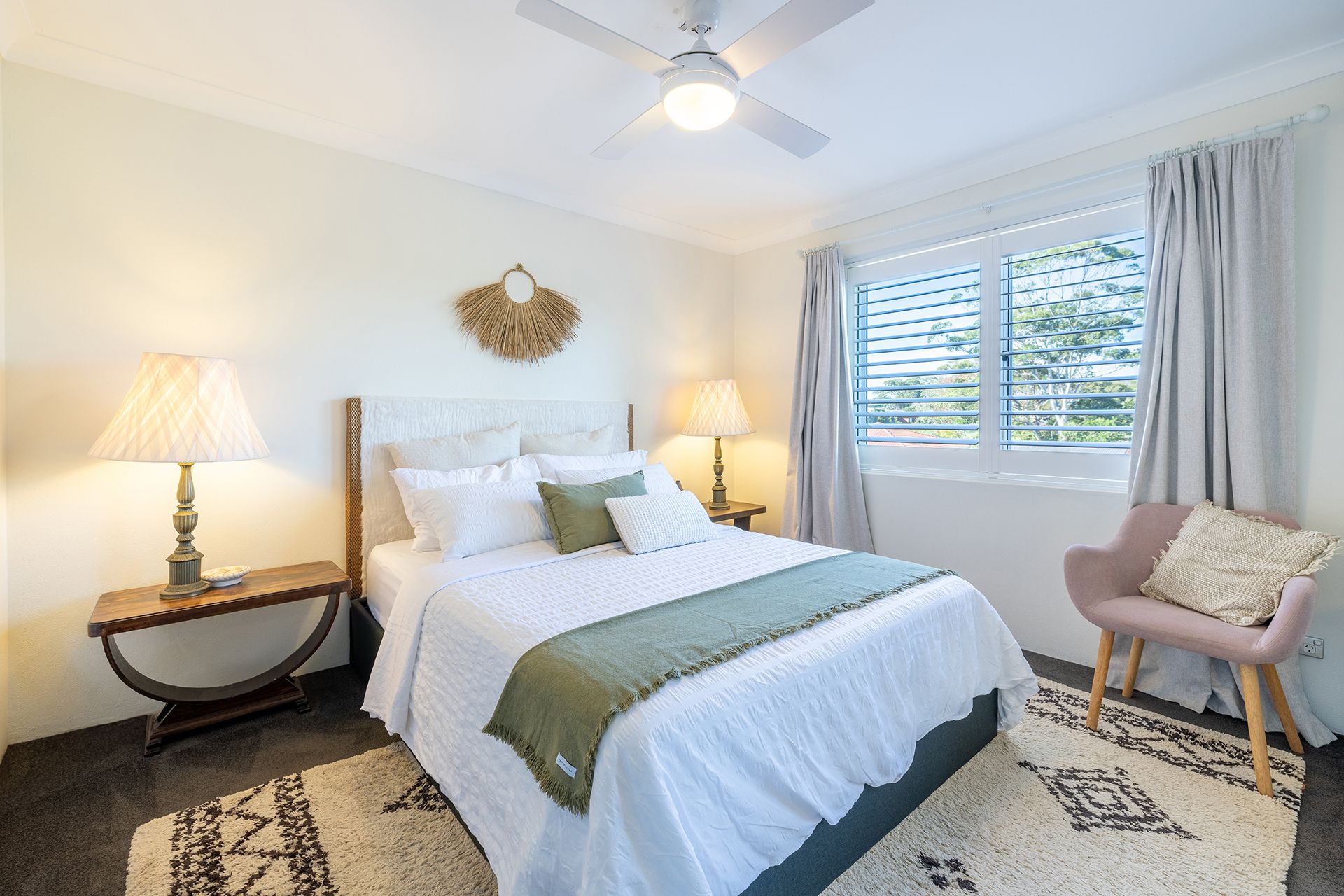 Bedroom 1 - Queen Bed + Ceiling Fan