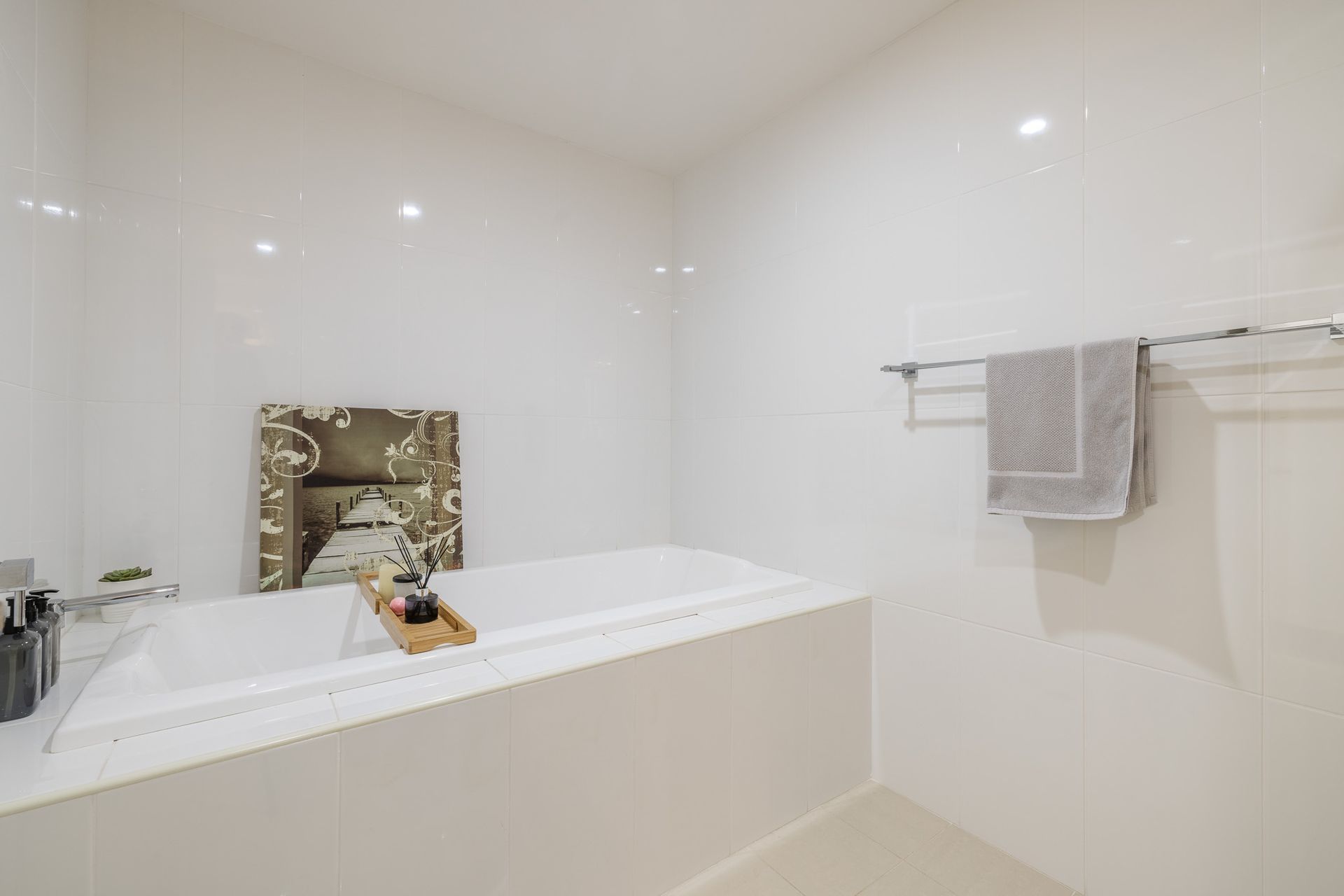 It boasts three spacious bedrooms, each meticulously designed, fully air-conditioned, and equipped with ceiling fans to keep you cool during your summer escapades. The large main bedroom offers a generous ensuite bathroom with a walk-in shower, walk in wardrobe and study table. The property also features a well-appointed main bathroom with a deep bath and walk in shower, and separate toilet, as well as an upstairs powder room.