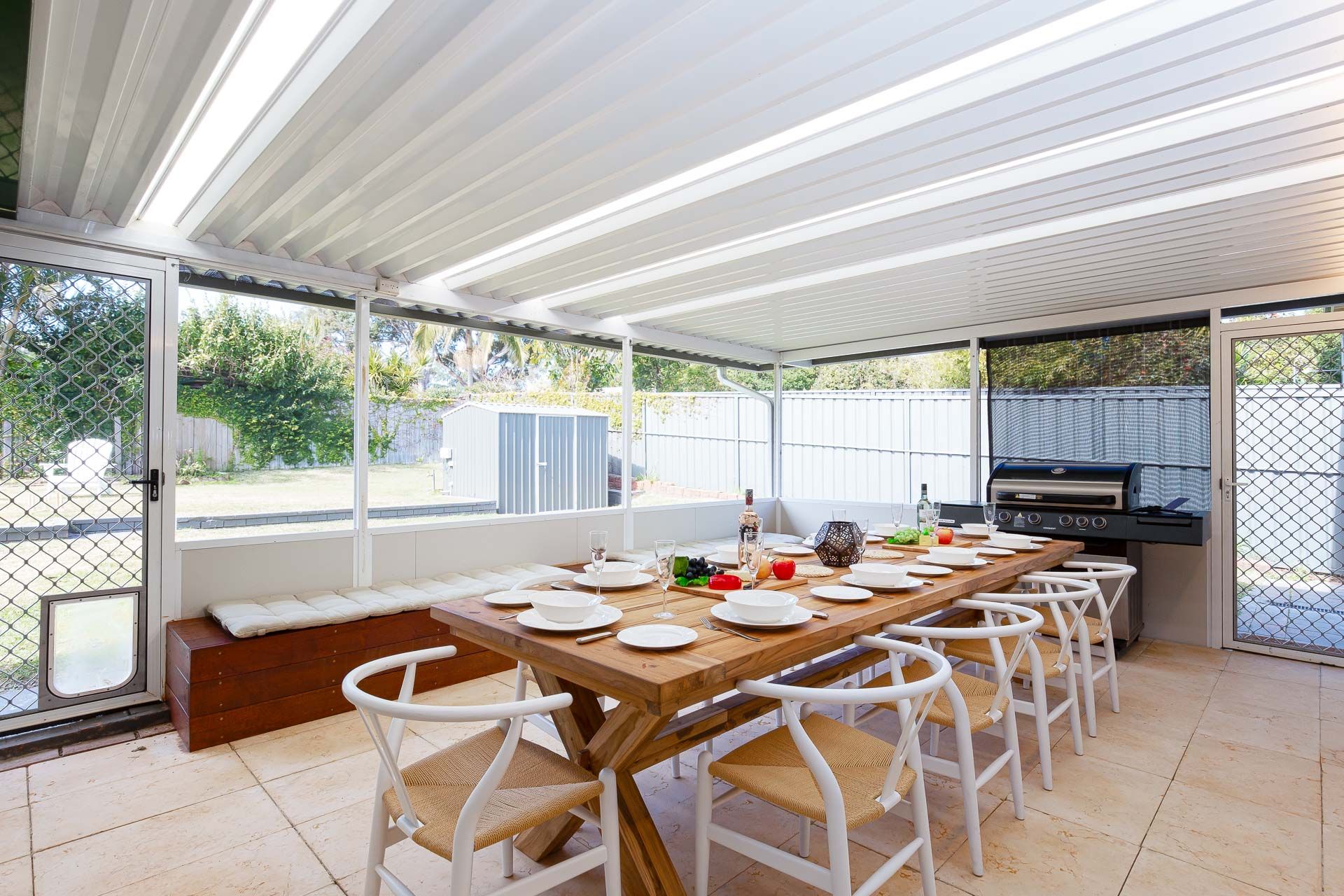 Sleeping 10 guests across 4 bedrooms, it is ideal for families, three bedrooms are located in the house and a sleep-out room which is accessible within the undercover outdoor entertaining area. All bedrooms have linen and bed making provided, ceiling fans and the master bedroom also providing an ensuite with a shower, toilet, and vanity.