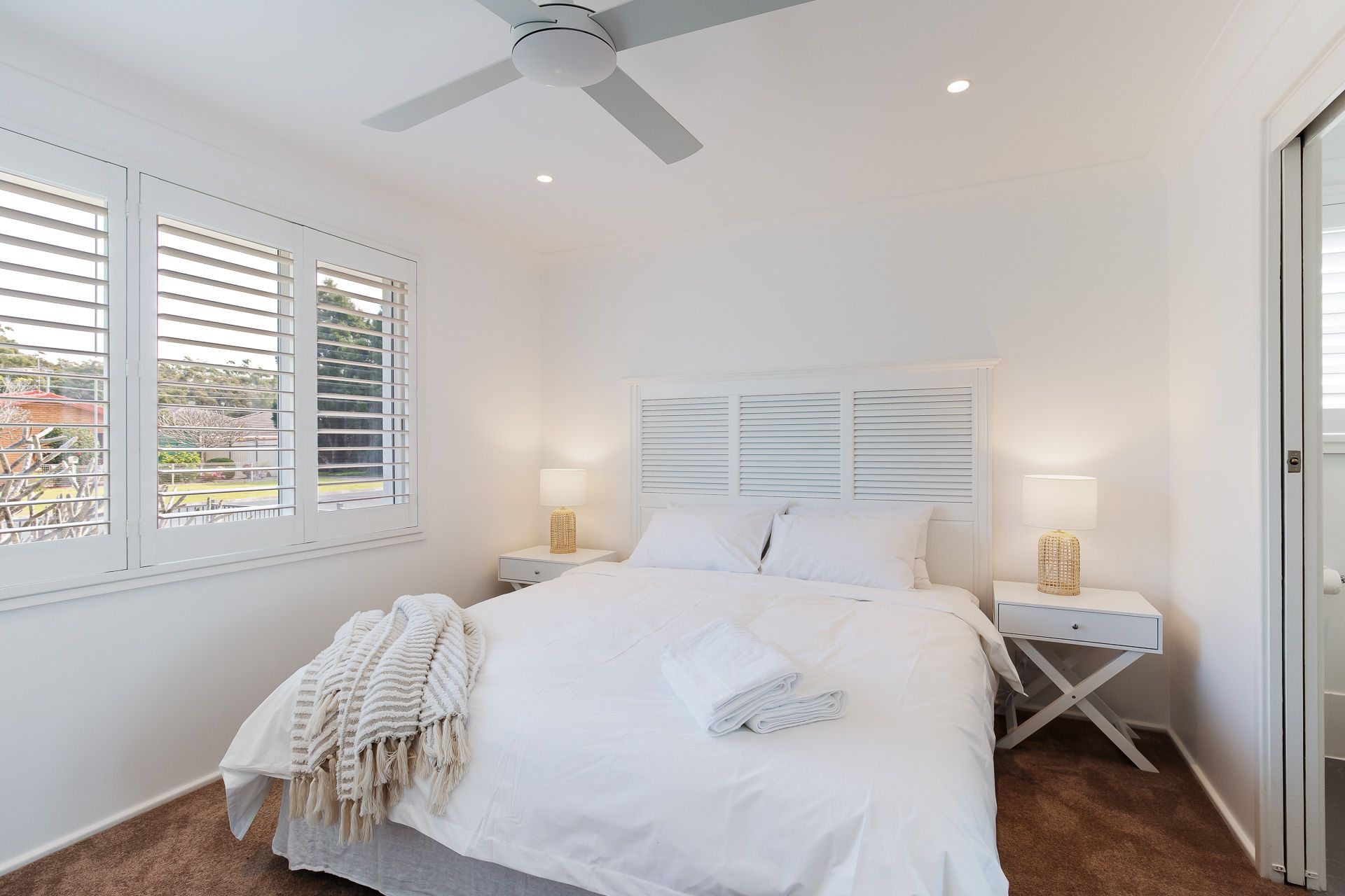 Bedroom 1 – King Bed + Ensuite + Ceiling Fan + Linen + Bed Making