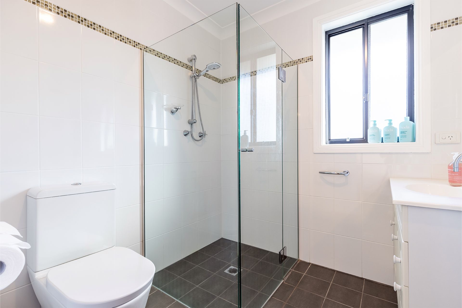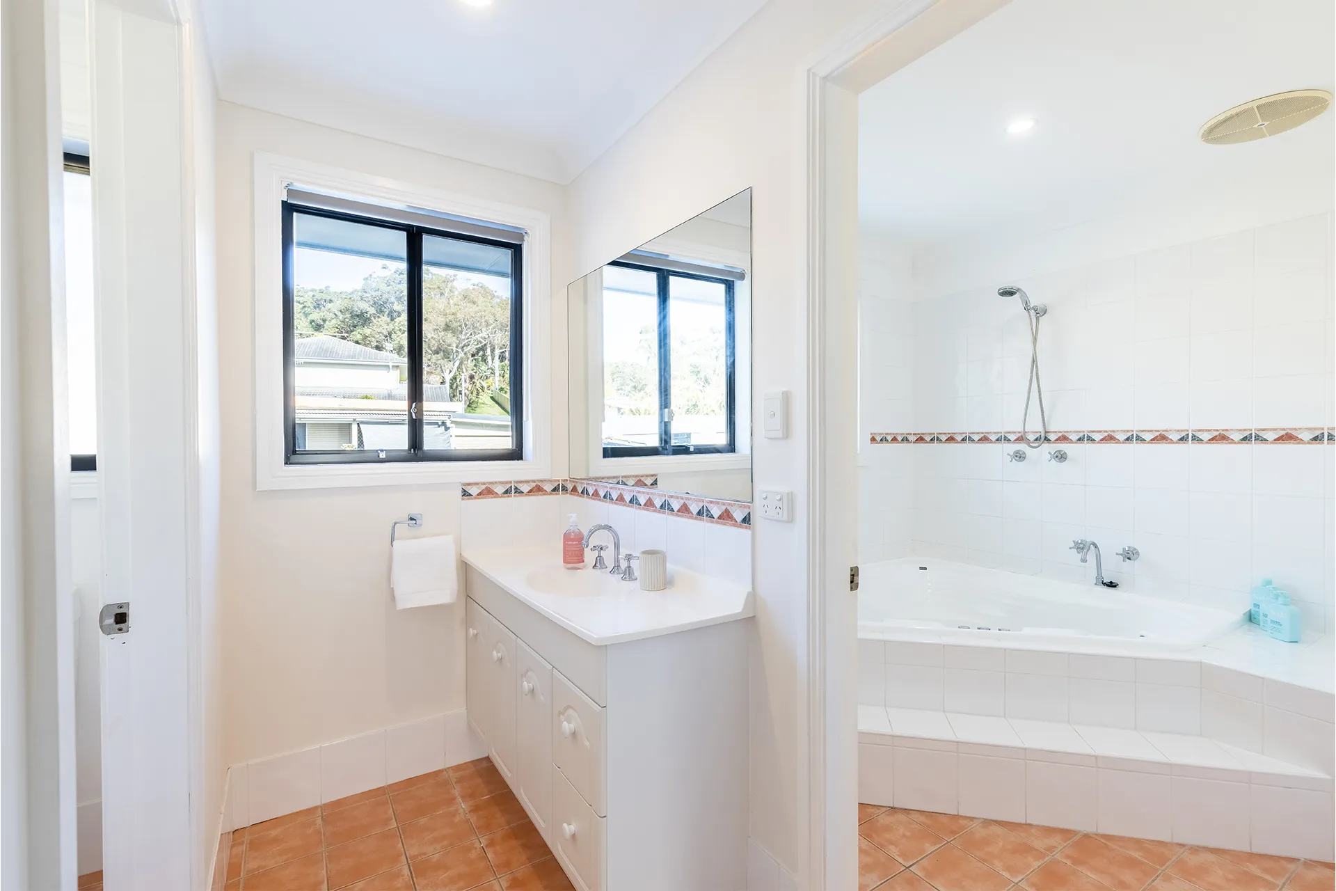 The main bathroom layout is three ways, making this an easy usable space by having a separate toilet area, separate bath with shower and separate vanity area. The owners also provide a port-a-cot, highchair and baby gate on the stairs for your convenience.