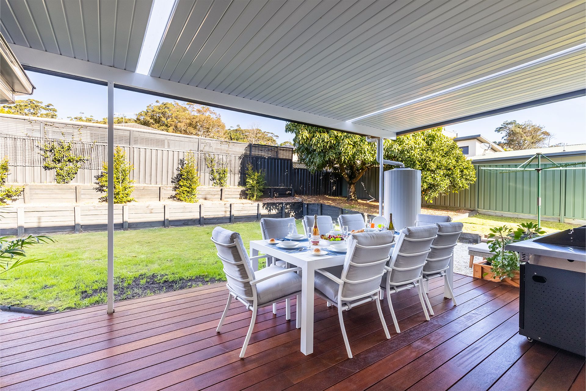 The backyard is perfect for the entire family to relax and unwind with an undercover entertaining area with gas BBQ, alfresco dining plus a fantastic area with firepit. The garden is fully fenced for pups.