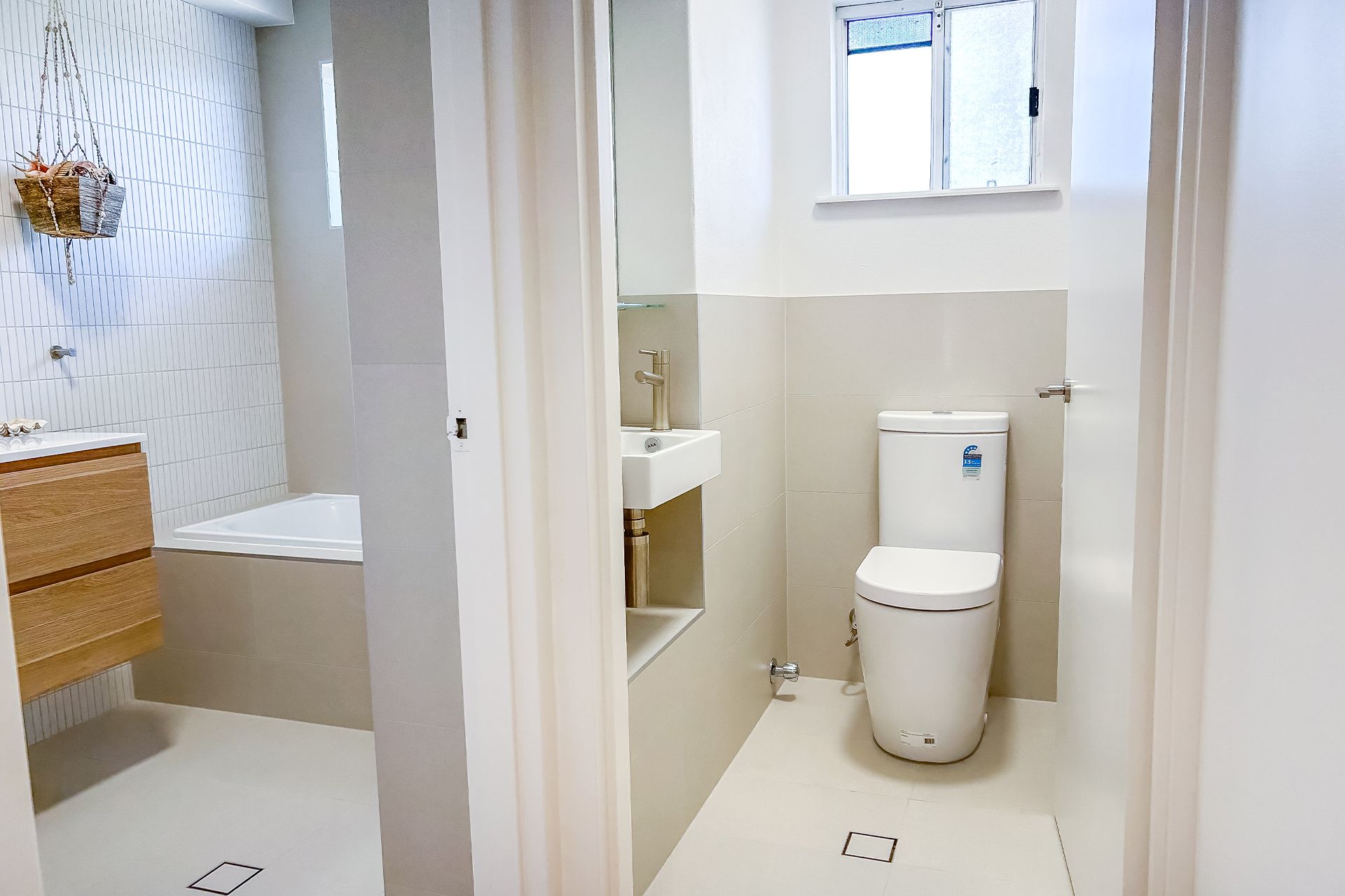 The second and third bedroom both have split system air conditioners, ceiling fans, SMART TV's and sliding door access to the rear balcony. The main bathroom has been completely renovated with floor to ceiling tiles, bath, shower, vanity, and the bonus of a separate powder room toilet - making this a very usable, convenient area.