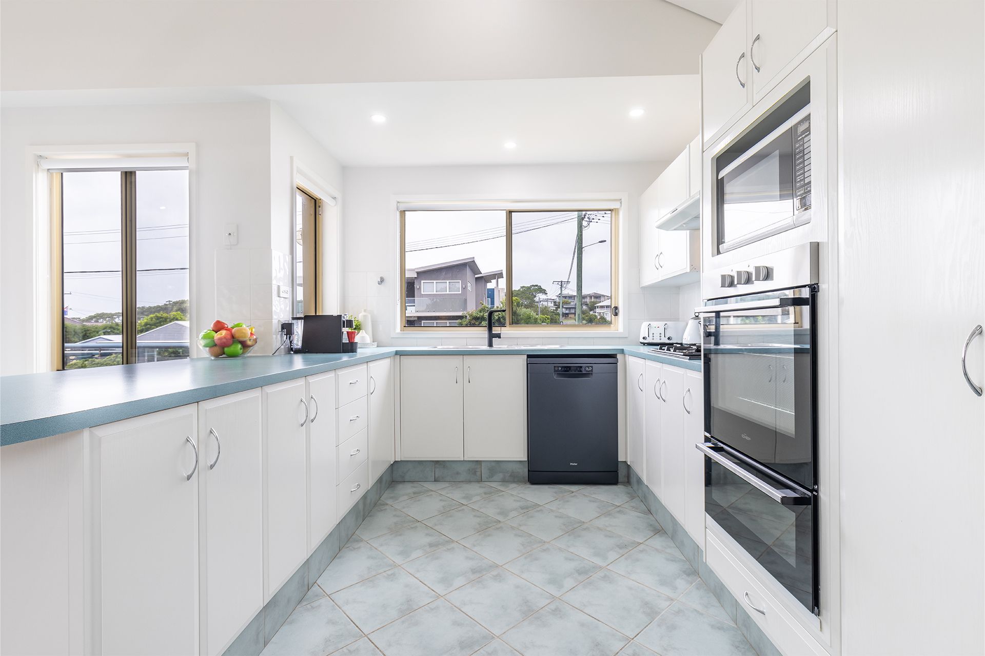 The balcony offers sea views and a Weber Q BBQ to cook up a storm after a day at the beach. Guests can also enjoy the convenience of secured garage parking for two vehicles on-site along with a generous courtyard space to store surfboards and bikes and the convenience of an outdoor shower (cold water only). There is an internal laundry with a top loader washing machine and a clothes dryer in the garage.