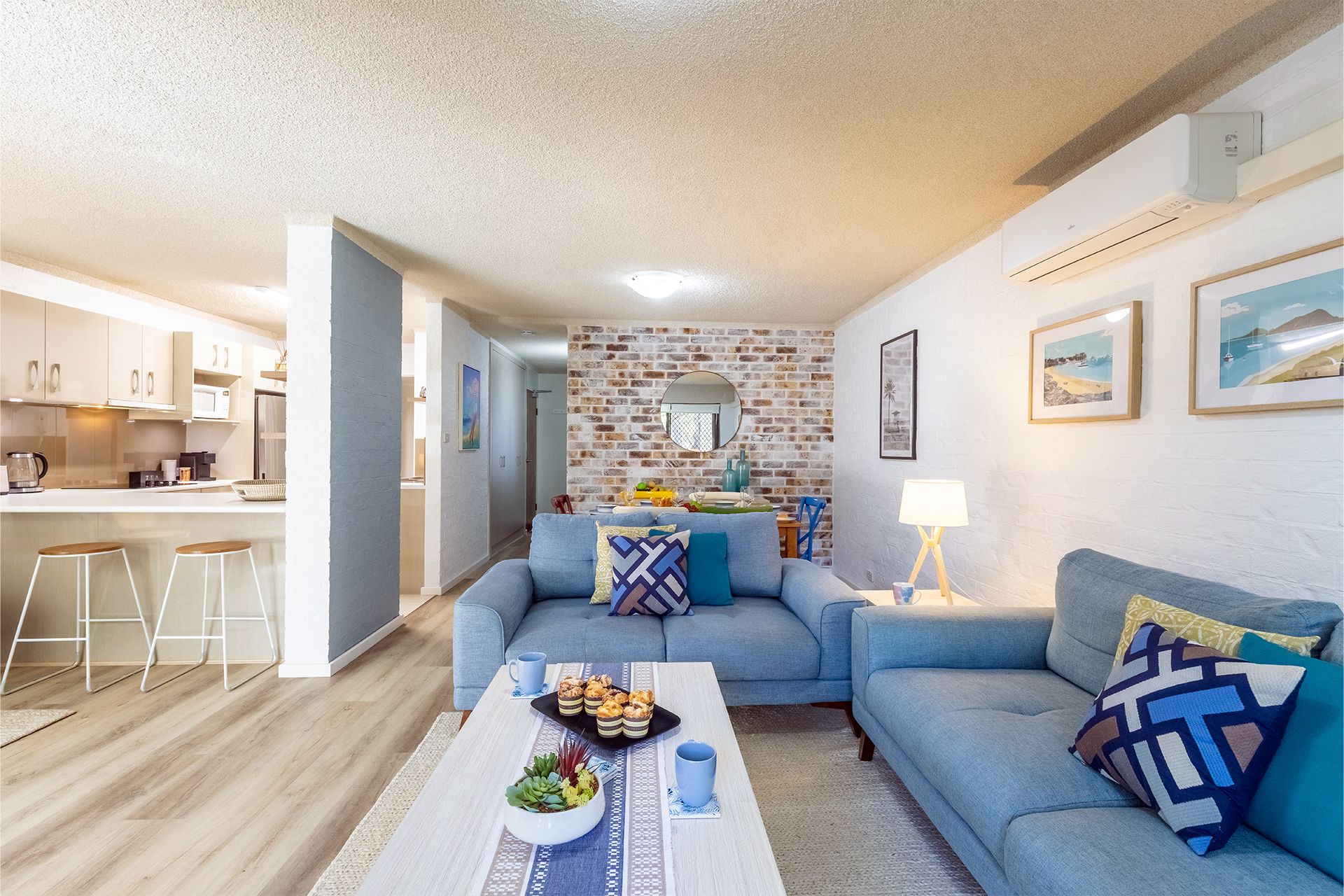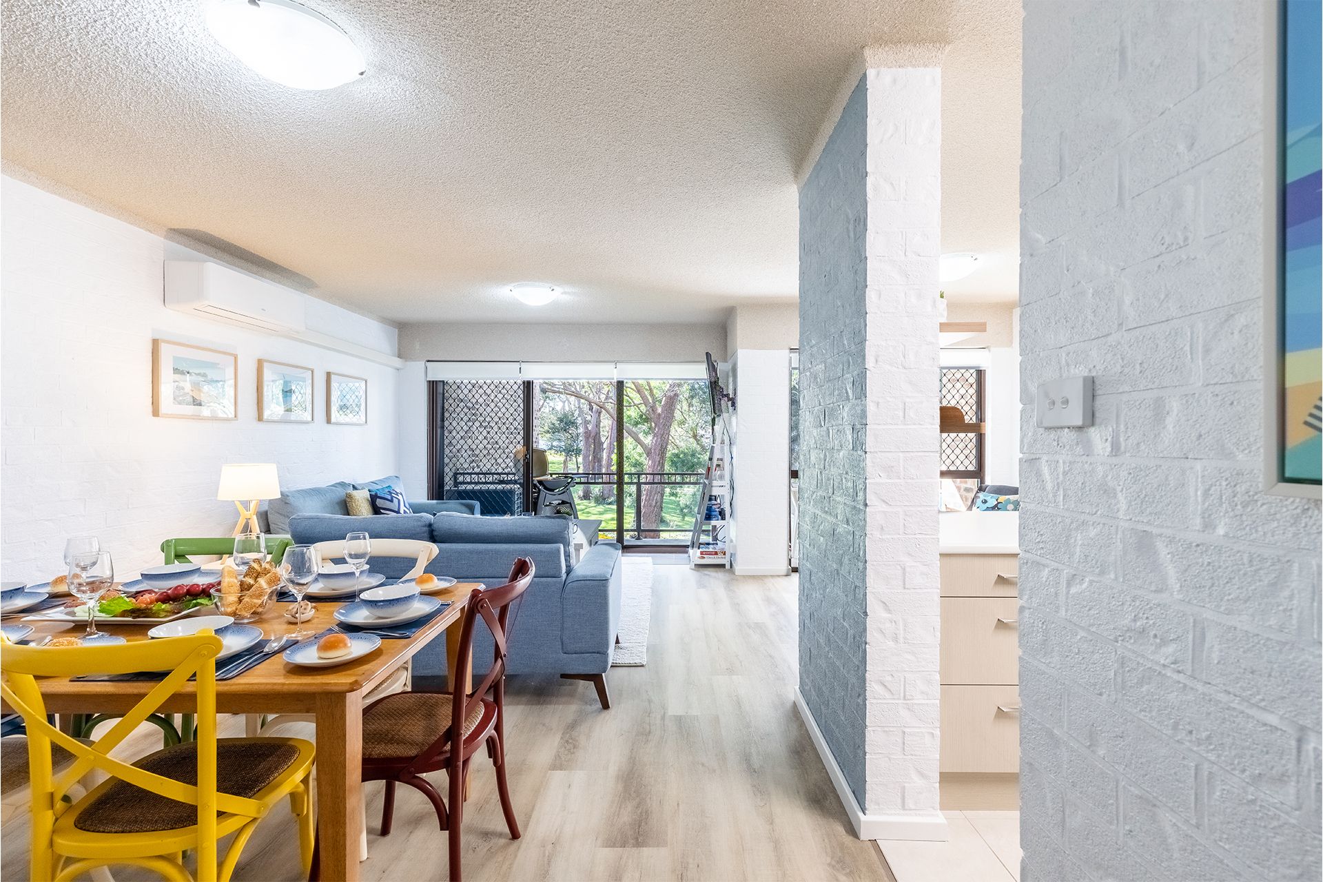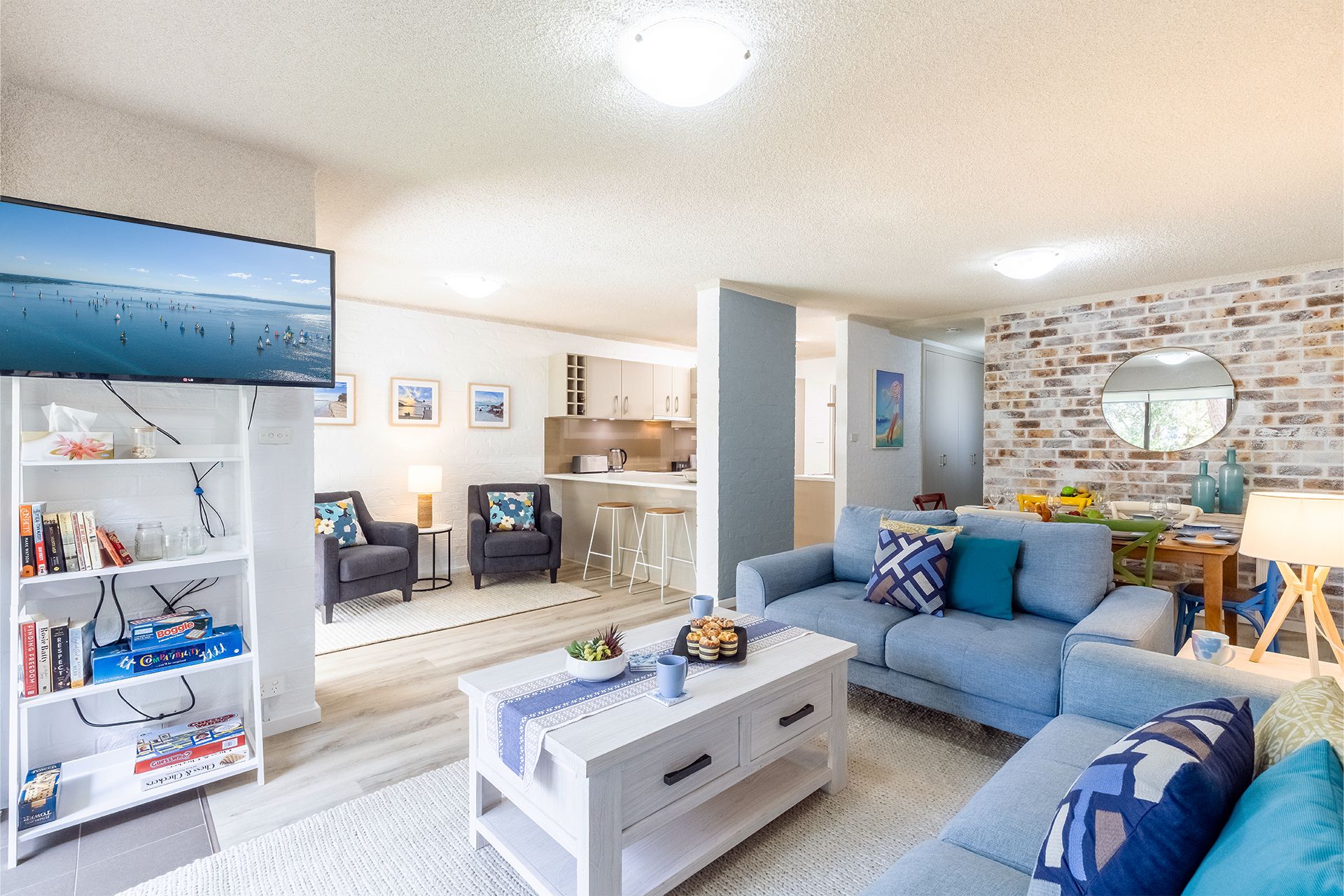 Unit 29 Bay Parklands is a first floor stunning, renovated 3 bedroom unit with water views and stylish furnishings throughout. There is an open plan, air-conditioned living/ dining area with a wall mounted TV, chrome cast so you can log onto your favourite streaming platform, books, and games to keep everyone entertained.