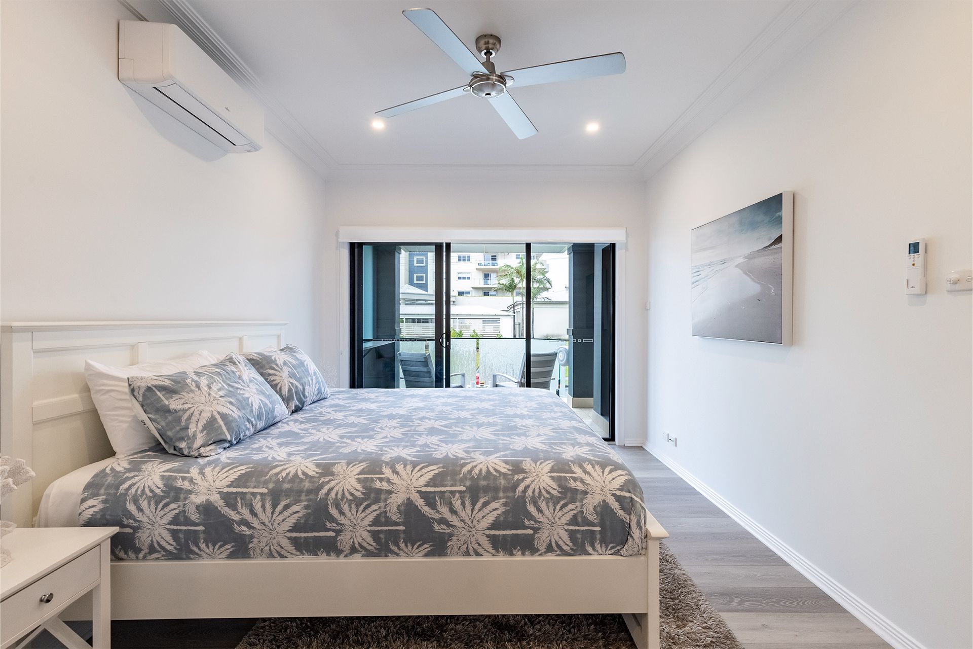 Bedroom 1 is also on the top level, it features a split system air conditioner, ceiling fan, walk in robe, ensuite with a shower, toilet and vanity and access to the balcony to allow the beautiful sea breeze to flow through and a cute sitting area for some self-time to catch up on that special book.