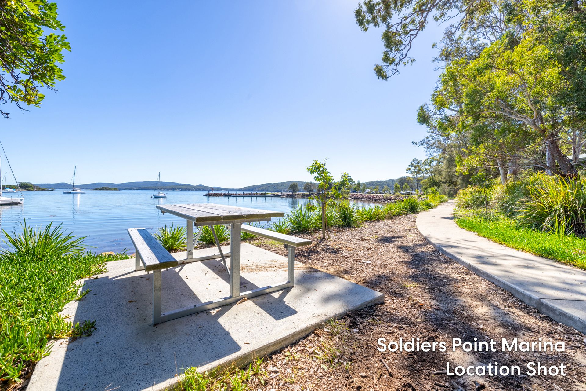 Just a five-minute walk from Soldiers Point Marina, you’ll find three excellent dining options close by. Bannisters Port Stephens and the Soldiers Point Bowling Club are also within easy reach, only fifteen minutes on foot. The Soldiers Point boat ramp is just 700 metres away, offering a great spot to launch a boat or catch one of the area’s spectacular sunsets.