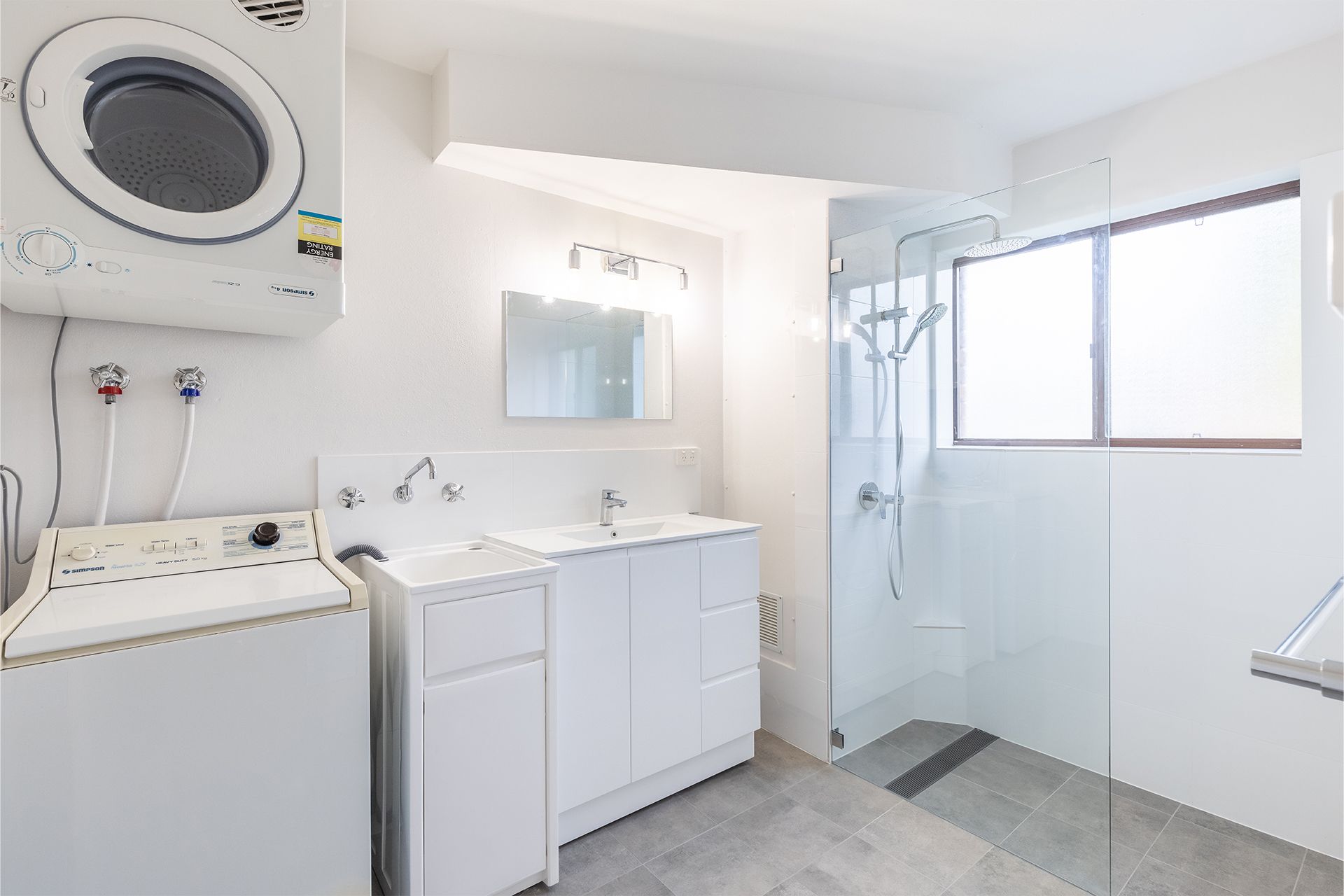 Your comfort is further ensured with amenities like a recently renovated bathroom/ laundry with walk in shower fitted with a relaxing rainwater showerhead, vanity, top loader washing machine, clothes dryer and the convenience of a separate renovated toilet and a single lock-up garage and one open car space for the second car or a small tinnie/ jet ski.
