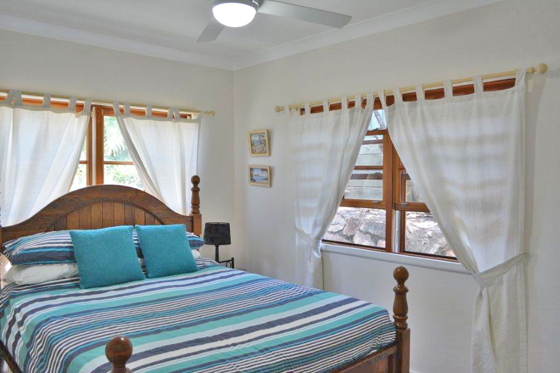 Bedroom 2 – Queen Bed + Ceiling Fan + Air Conditioning