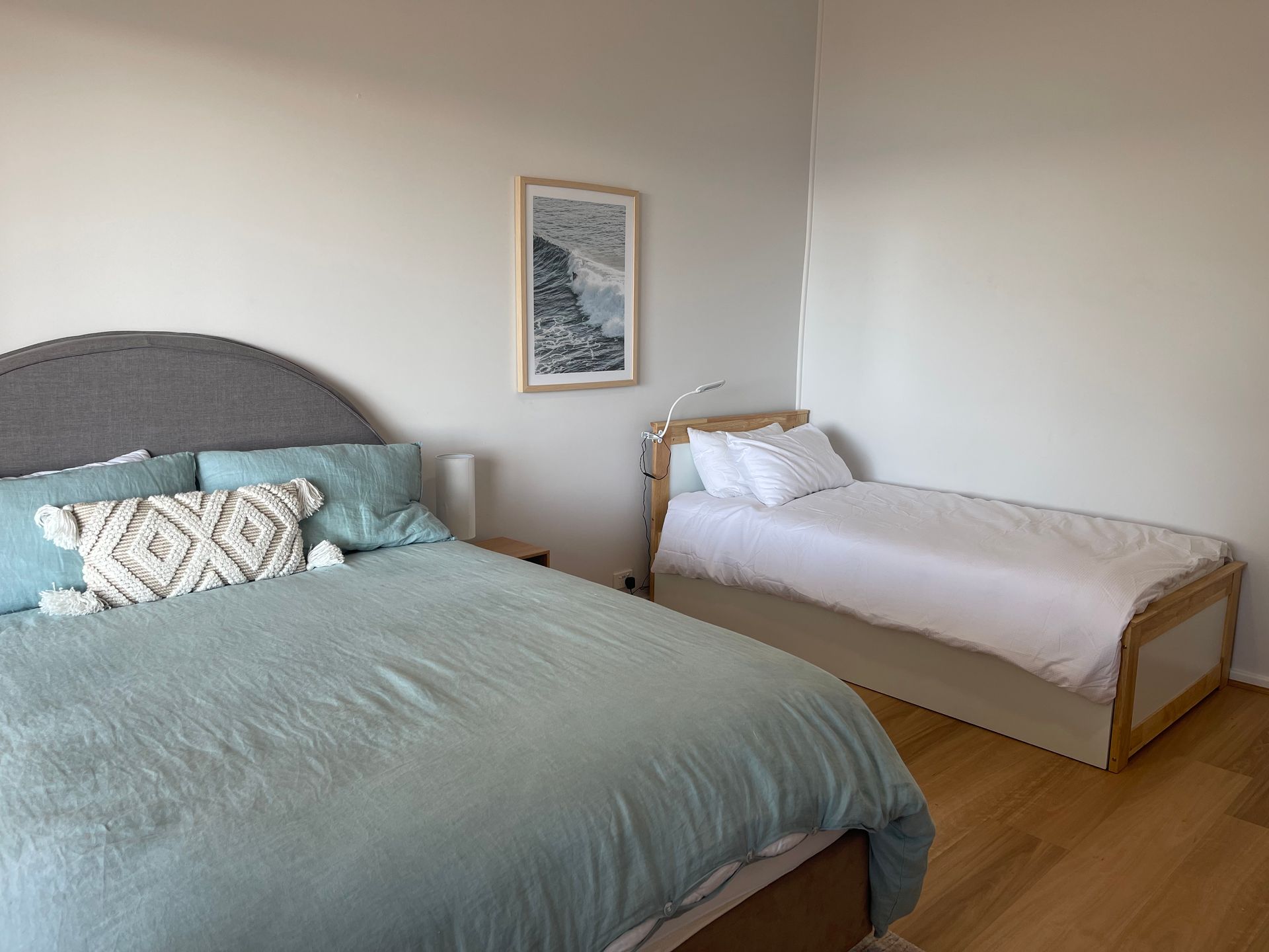 Bedroom 2 – Queen Bed + King Single Bed + King Single Trundle Bed + Ceiling Fan + Linen + Bed Making