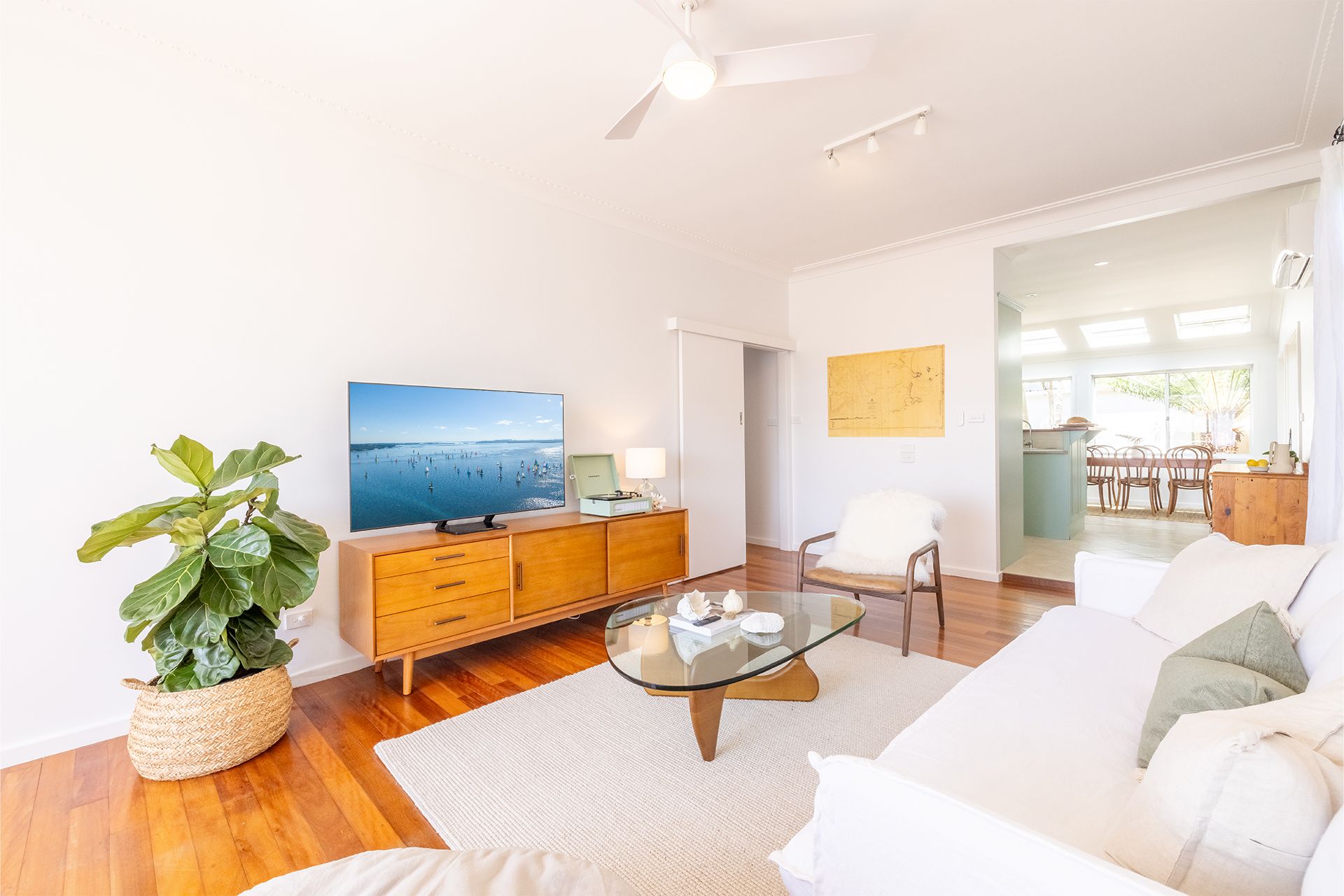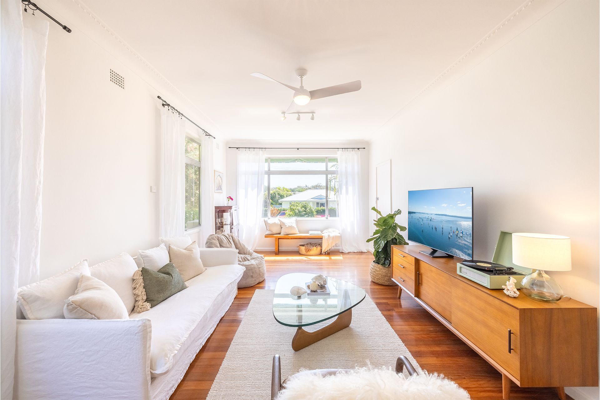 The owners have furnished the property to provide the comforts of home when they come and stay, and want guests to feel the same way. The home boasts three designed bedrooms all with linen and bed making provided. Each room is a haven of relaxation with plush bedding, remote ceiling fans, and beautiful timber floorboards. The second bedroom provides a working station for those who are on a working holiday; whilst the third bedroom has twin king single beds to provide flexibility for guests. Ample storage space in all rooms makes it easy for guests to unpack and settle in quickly.