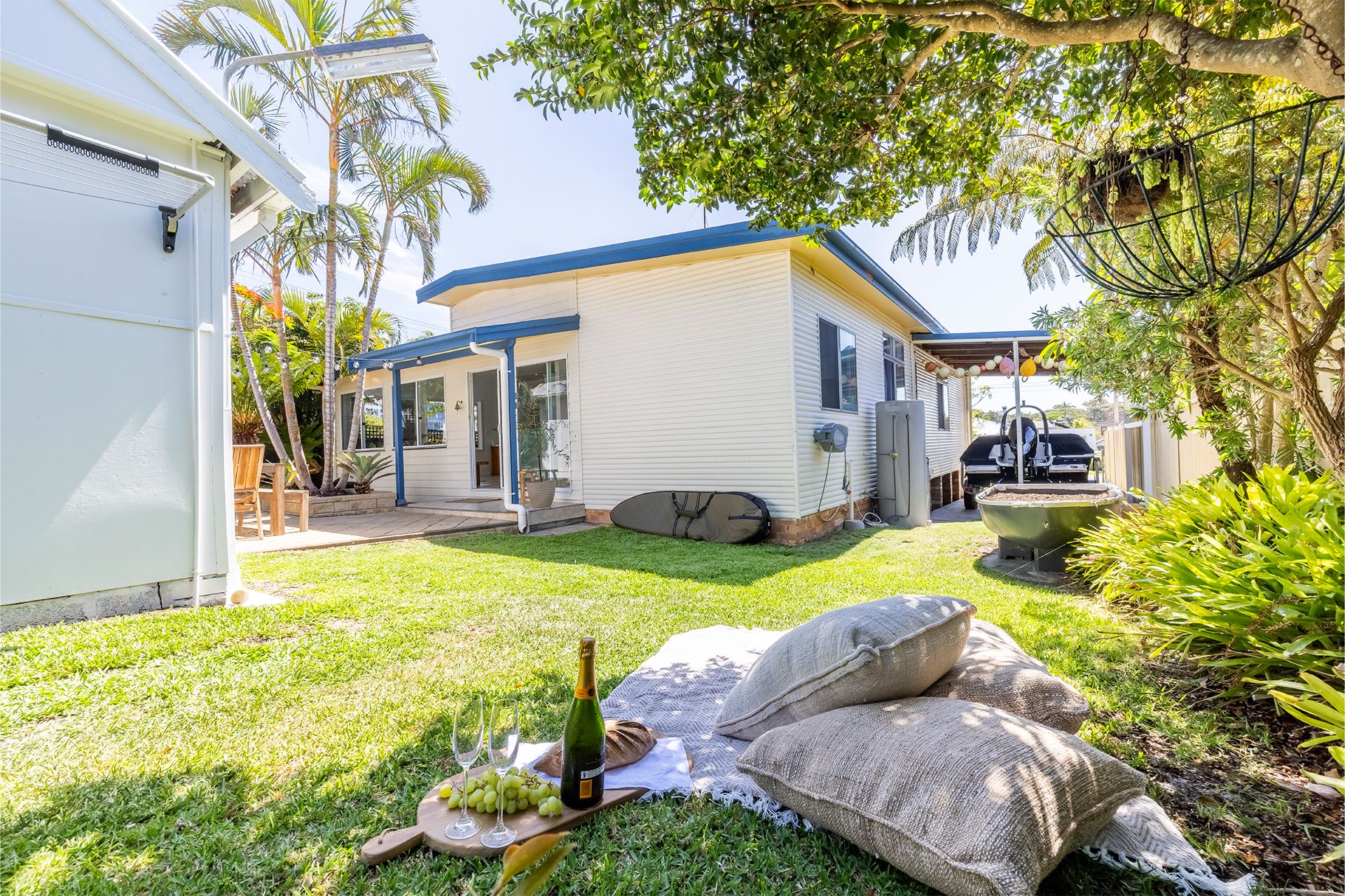 A relaxing yard and outdoor area offer unbeatable relaxation spaces, kick back to the gentle hum of nature, sit back and watch your favourite movie on the outdoor cinema projector or sit amongst the rainforest styled garden.
