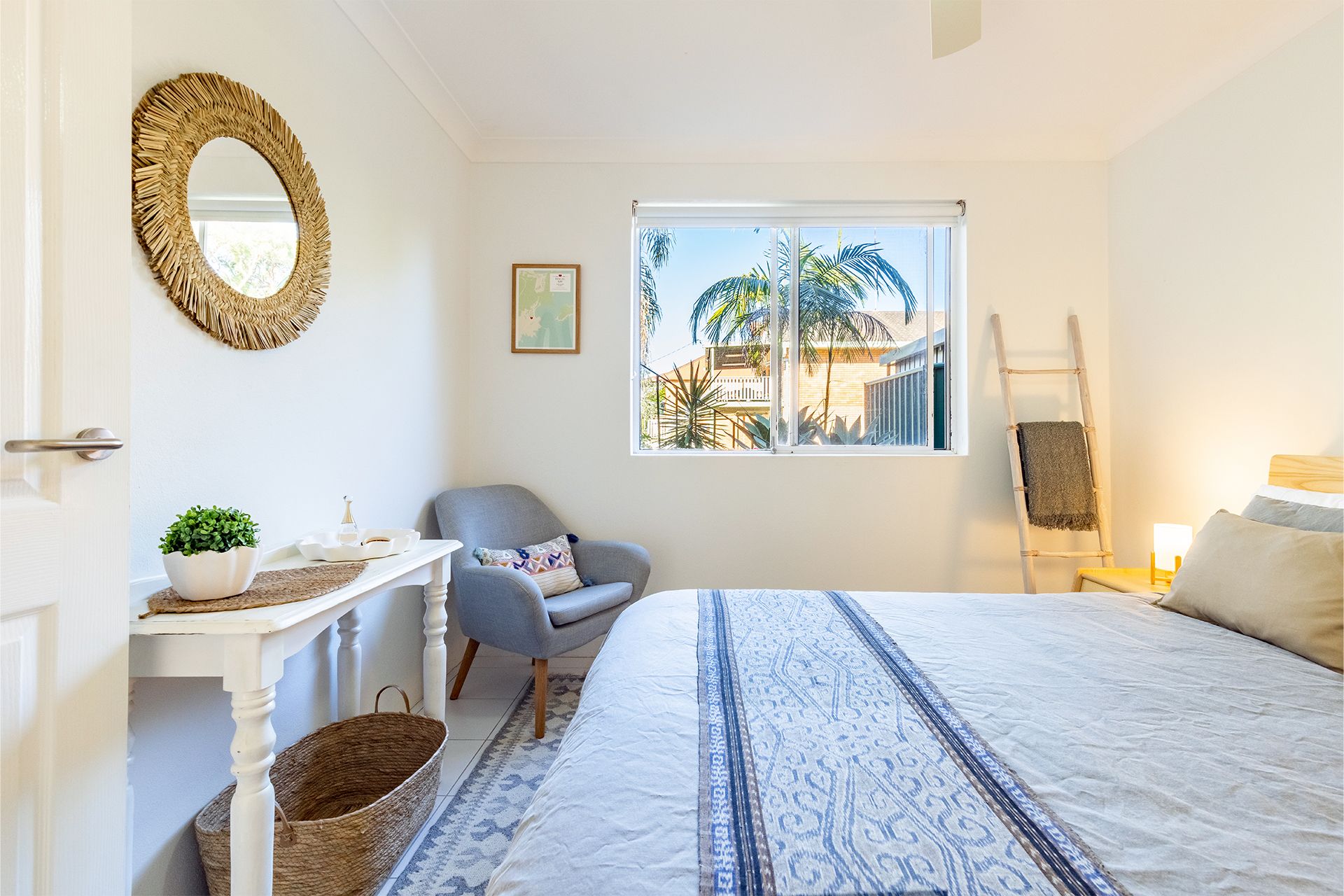 Bedroom 1 – Queen Bed + Ceiling fan