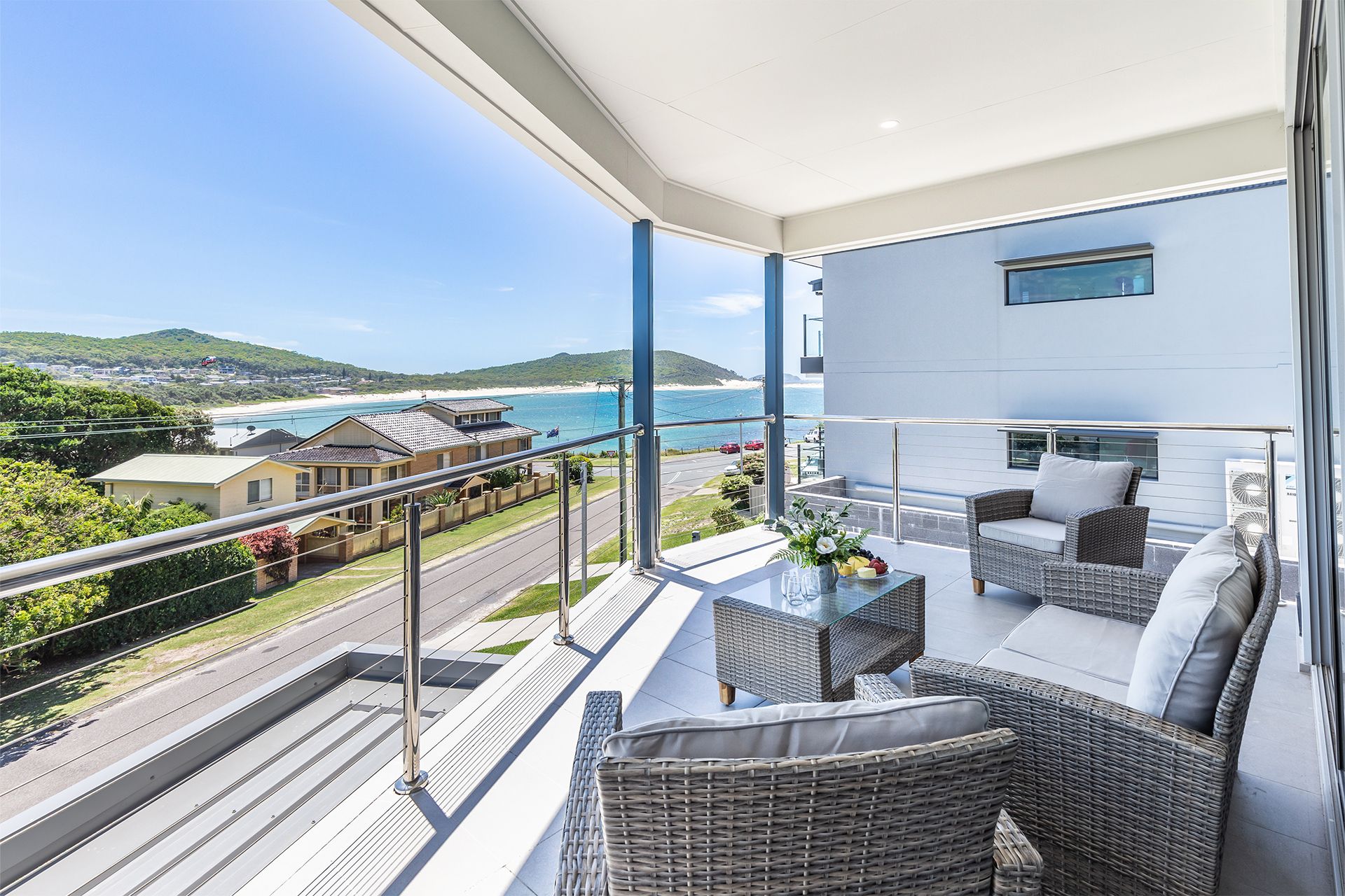 Both upstairs and downstairs living area opens out to a large balcony with outdoor dining, a great place for alfresco dining while enjoying the ocean views across Fingal Bay. Fingal Bay View is in a great location, just a short walk to the beach and shops, a little further down to Fingal Bay Surf Club, Longboat Café and Fingal Bay Bowling Club.
