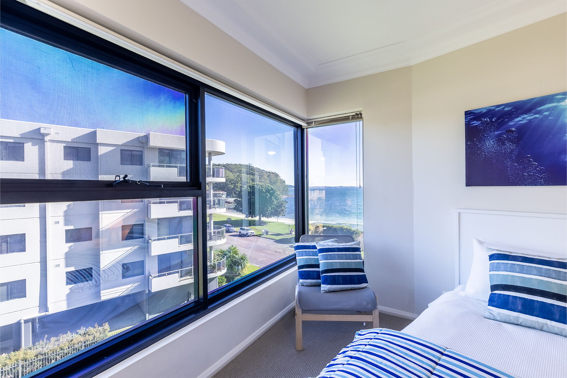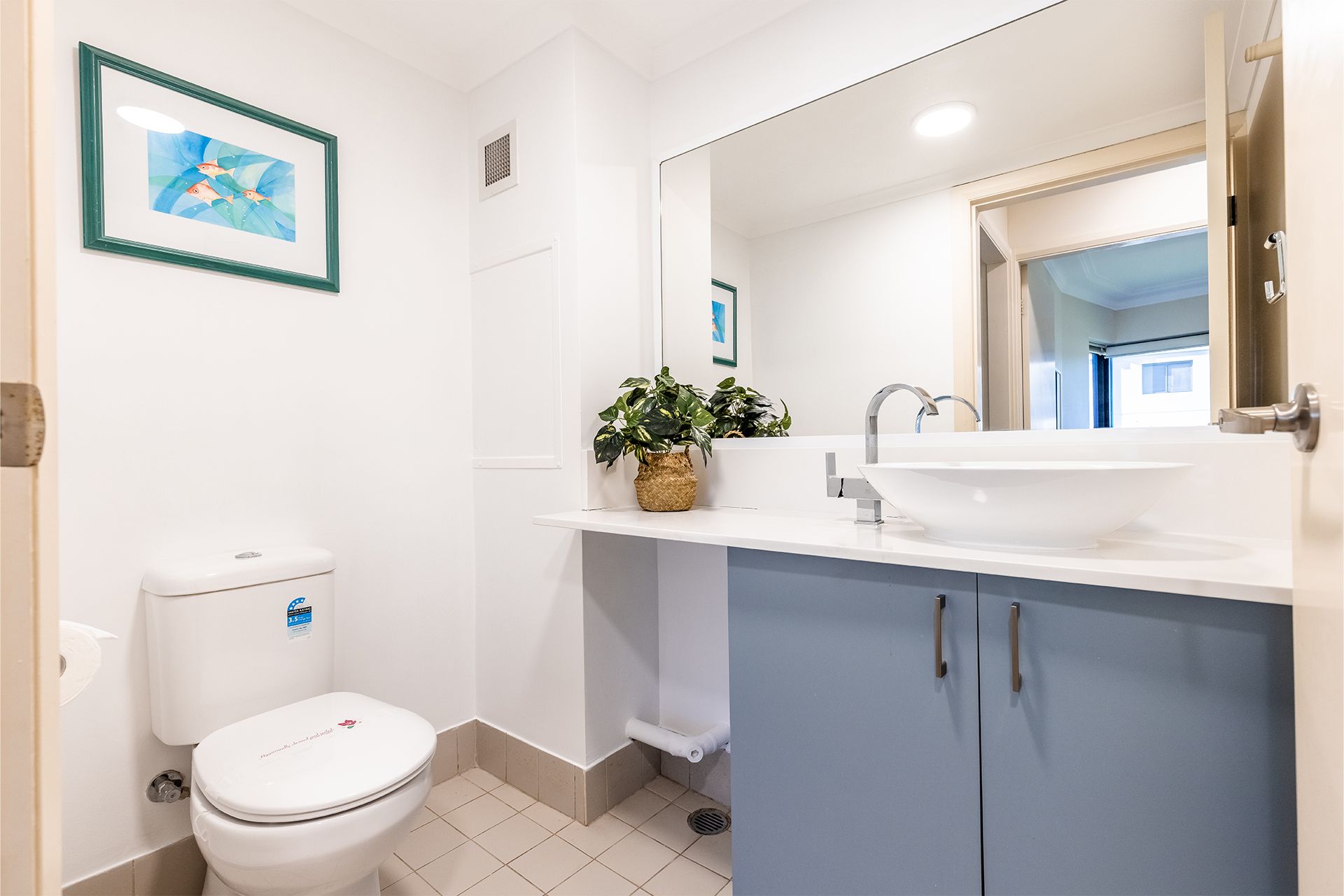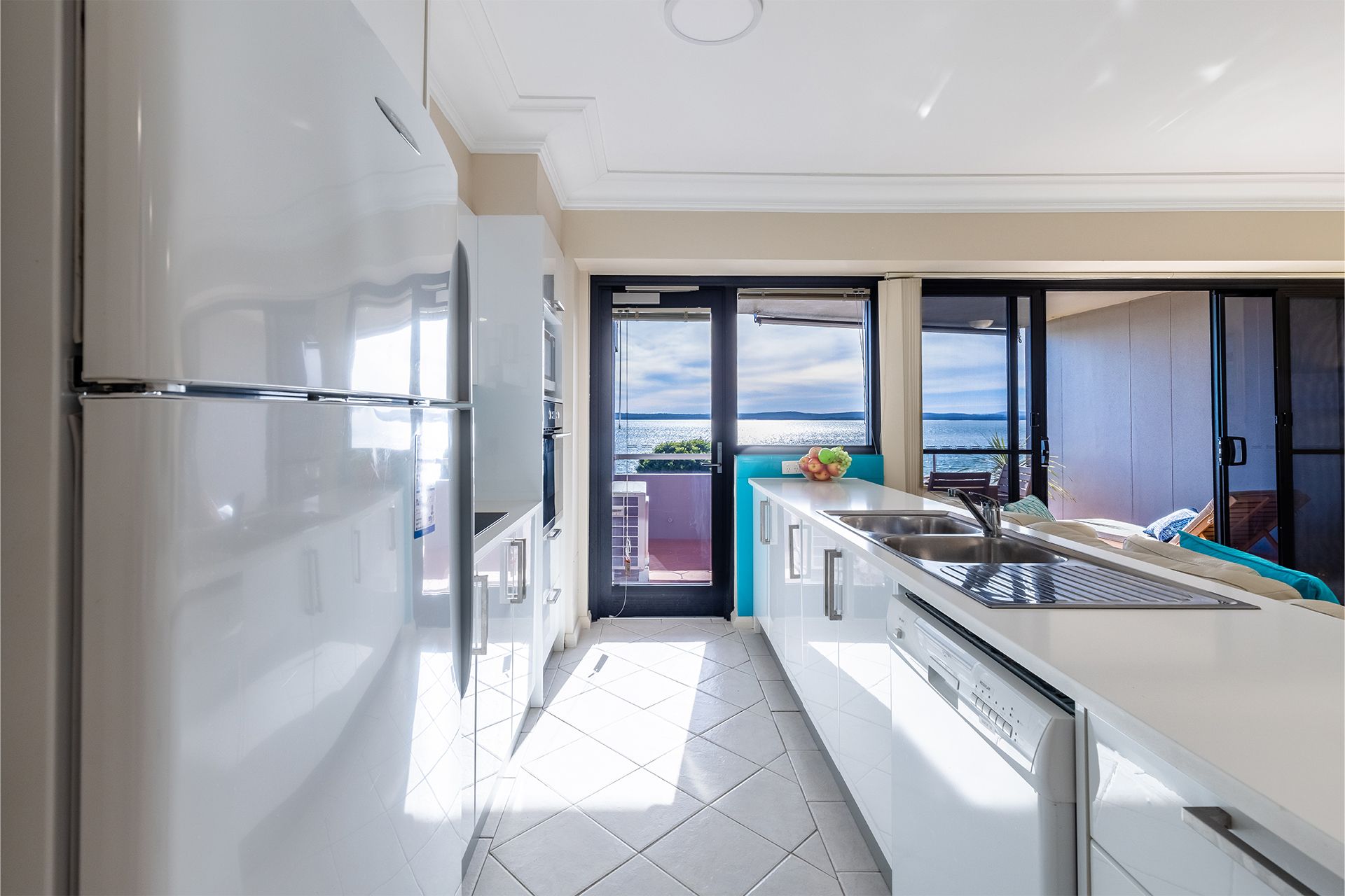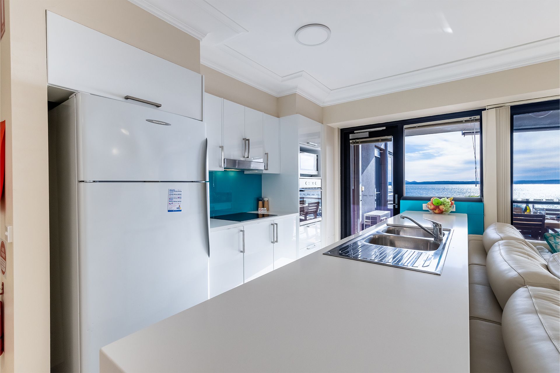 This three-bedroom unit has just been re-furbished to provide a chic contemporary feel. Positioned to take full advantage of the stunning water views from the balcony, living/ dining area, main bedroom and second bedroom. Imagine waking up in the morning and opening the blinds to the beautiful water views this unit has to offer.