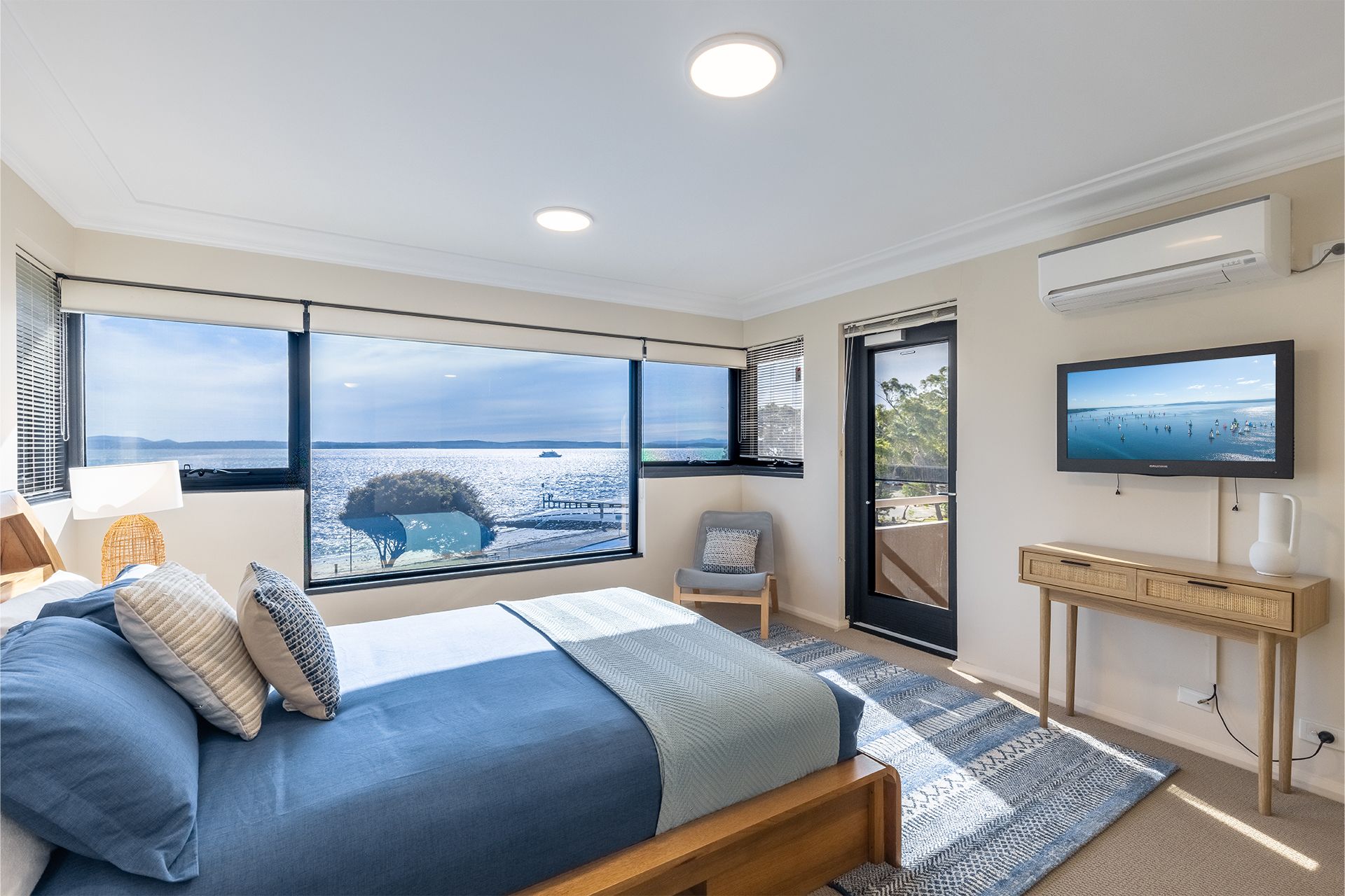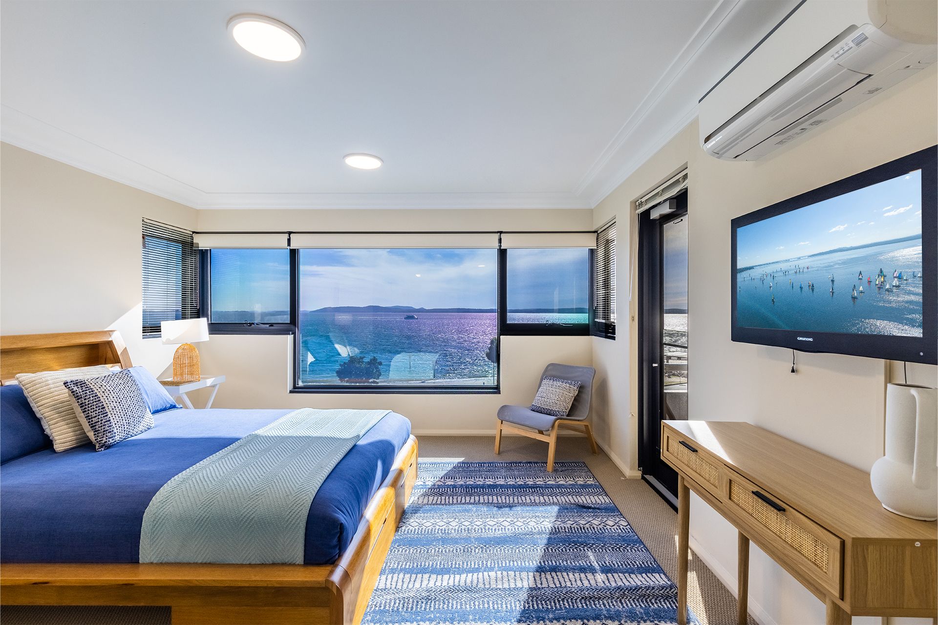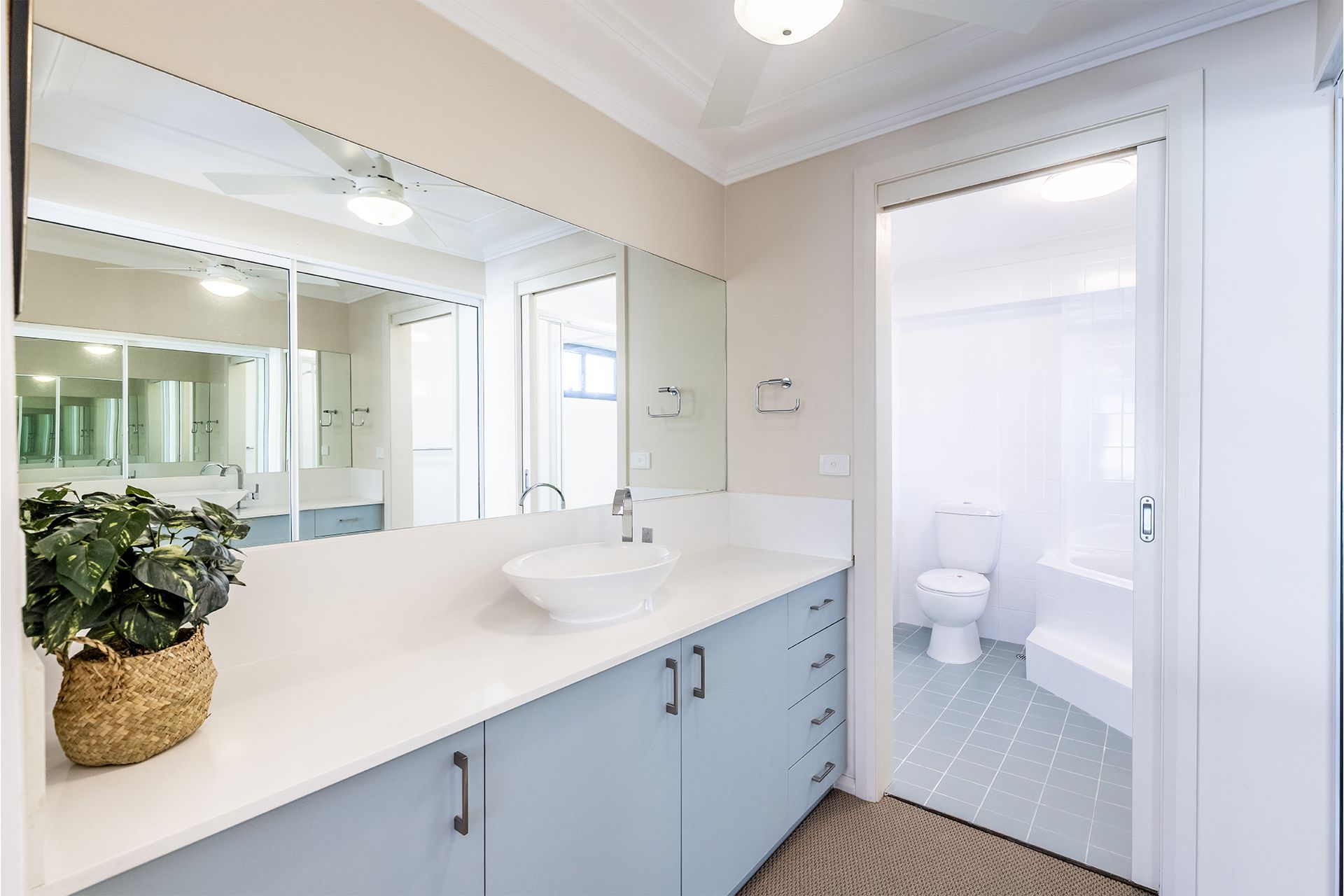 Three large bedrooms all with ceiling fans and the main having spectacular views, split system air conditioner, Smart TV, Walk in Robe, access to the balcony and an extra-large ensuite with spa bath, shower, toilet, and separate vanity area.