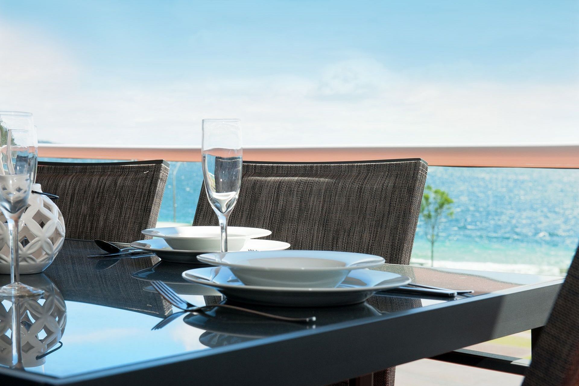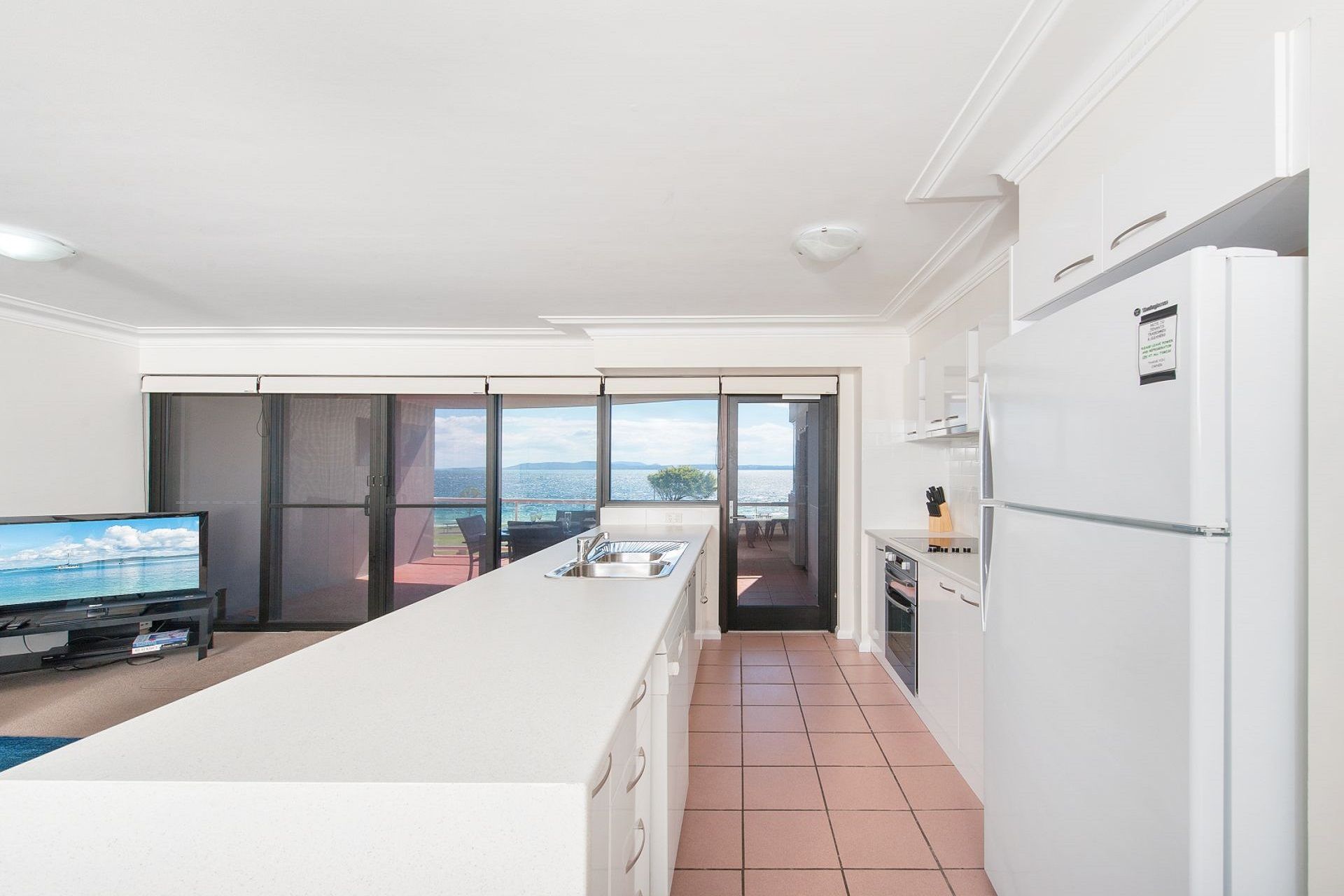 The spacious open plan living area opens out onto the large balcony that has alfresco dining and a sunlounge so you can lay back and relax and take in the sensational views of Little Beach.