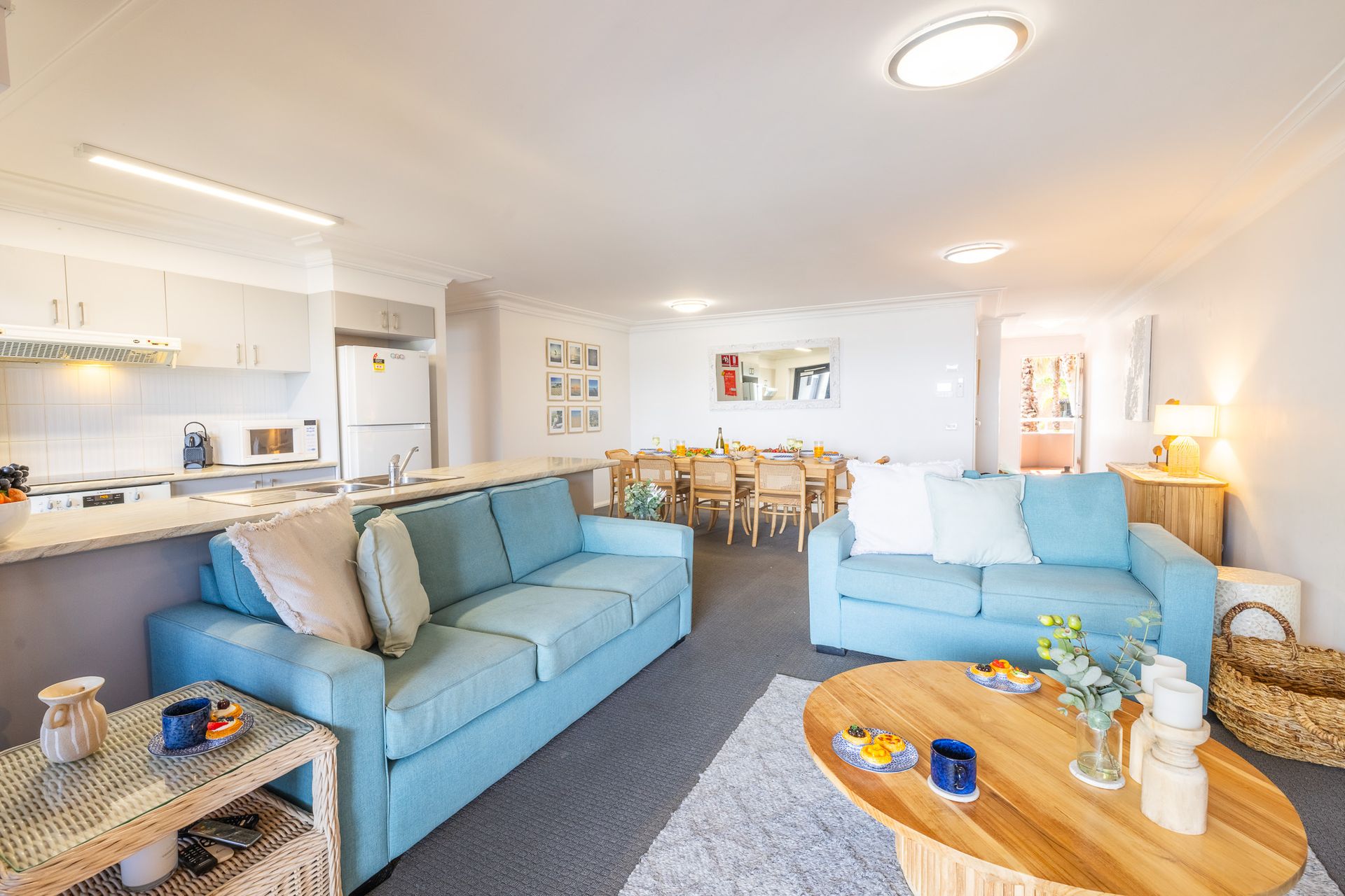 Two living area with state-of-the-art amenities include big screen Smart TV’s and free unlimited Wi-Fi. A well-equipped kitchen with dishwasher, family size fridge/ freezer, microwave, coffee machine and a large bench space to prepare meals. Enjoy your evening coffee in the comfort of your balcony, taking in the breath-taking water views, or whip up a meal on the gas BBQ.