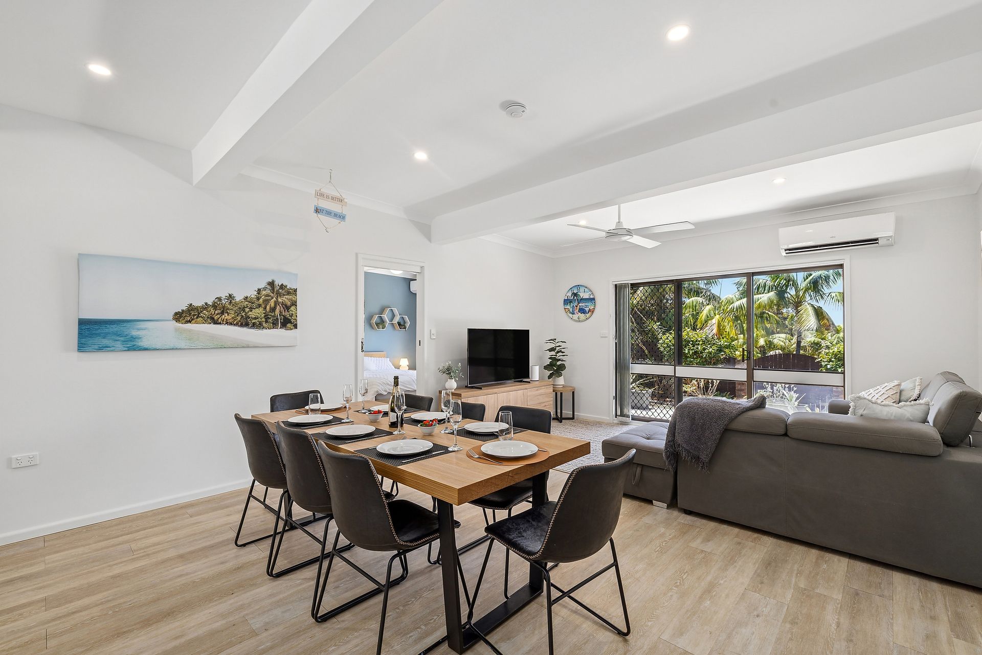 The main section of the property is located on the ground floor with all living and bedrooms having no stairs. There is a double garage for parking with internal access, as soon as you walk inside you will be taken by the space in the open plan living/ dining area, this area also features a split system air conditioner, ceiling fan, smart TV and unlimited Wi-Fi.