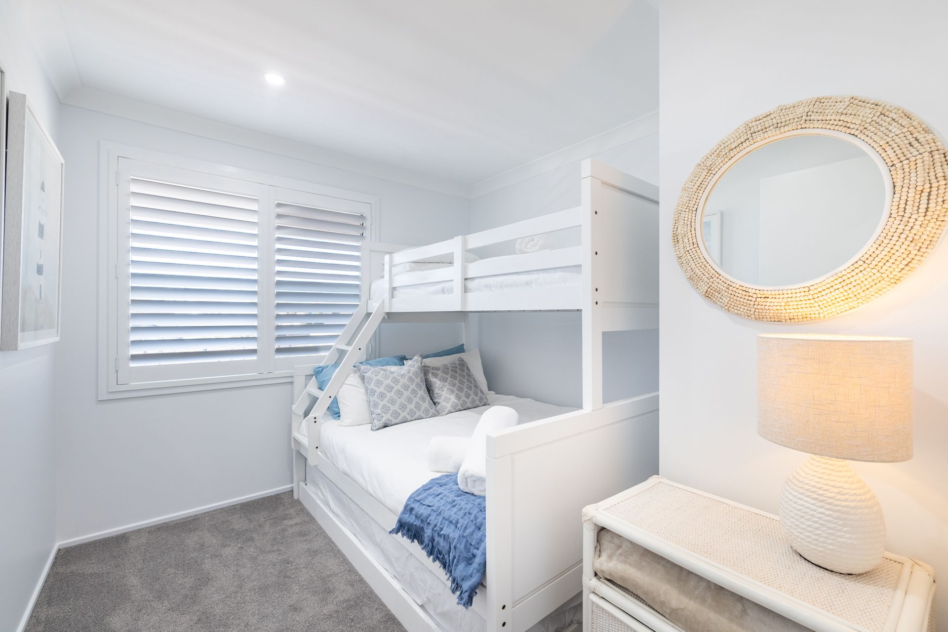 This stunning holiday property spread over two levels and boasts an expansive layout with three comfortably furnished bedrooms fitted with stunning linen and bed making provided upstairs. The master suite, enveloped in luxury, features a queen bed and ceiling fan. The second bedroom provides a cozy queen bed, and the third bedroom offers a tri bunk with a double below and single bed above to comfortably accommodate everyone. Complete with two well-appointed bathrooms, one being downstairs with a shower, toilet and vanity and one being upstairs with a bath, shower, vanity, and separate toilet. Your comfort at Hank's Corlette House is the top priority with a second living area downstairs fitted with a large Smart TV, relaxing lounges, and split system air conditioning.
