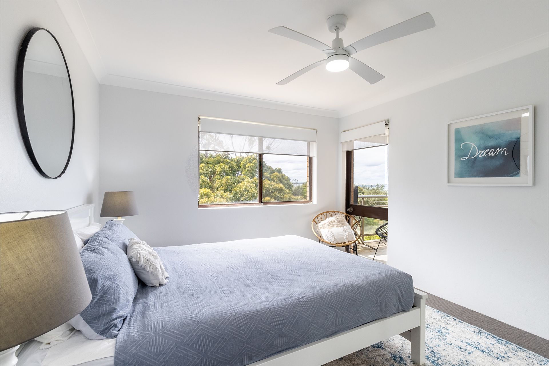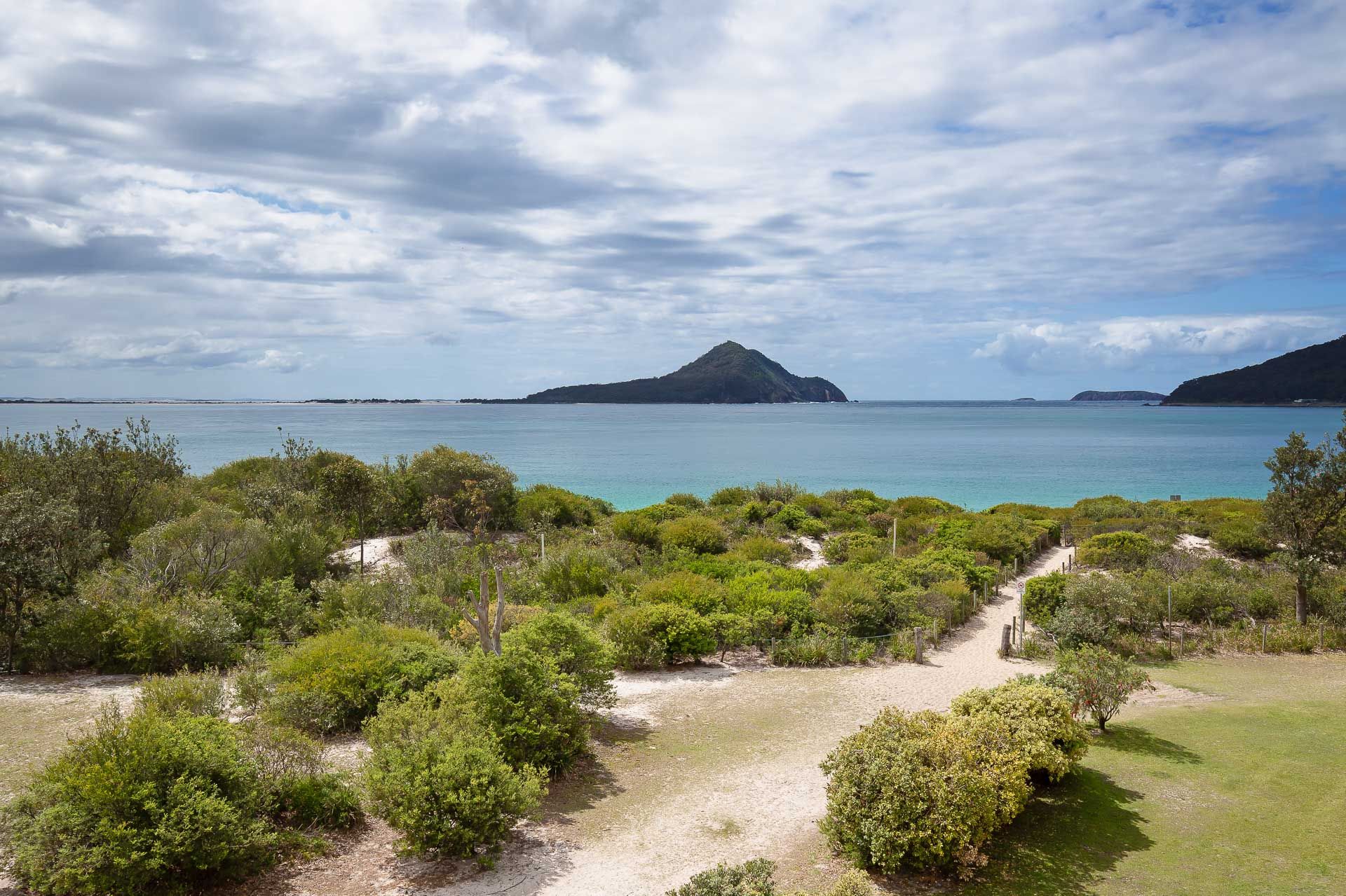 The north-facing covered balcony is a sanctuary for relaxing, soaking up sun, sea and fresh air with uninterrupted views to the headlands of Port Stephens as well as the treetops nearby. Sunrise on the balcony provides a spectacular start to the day.