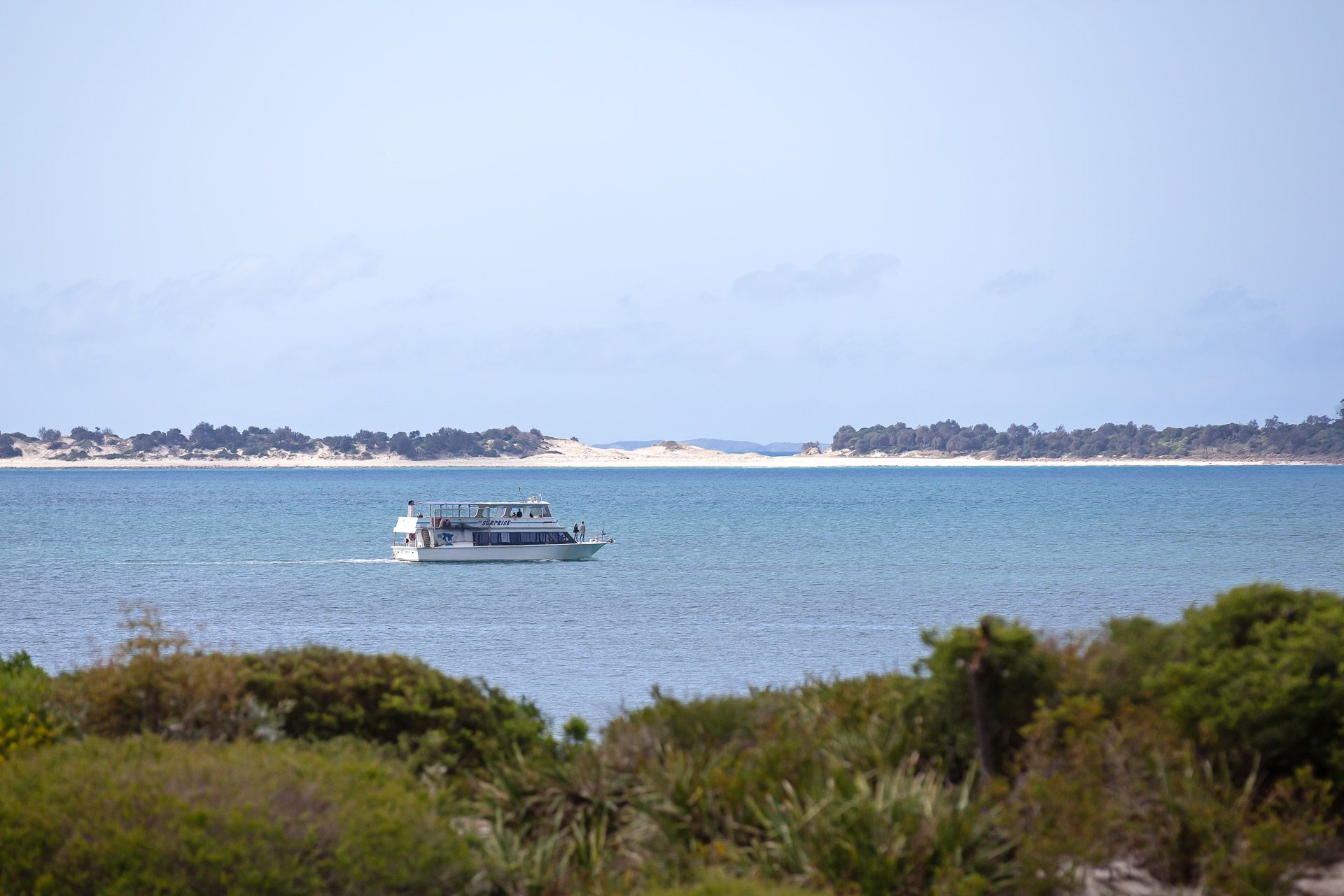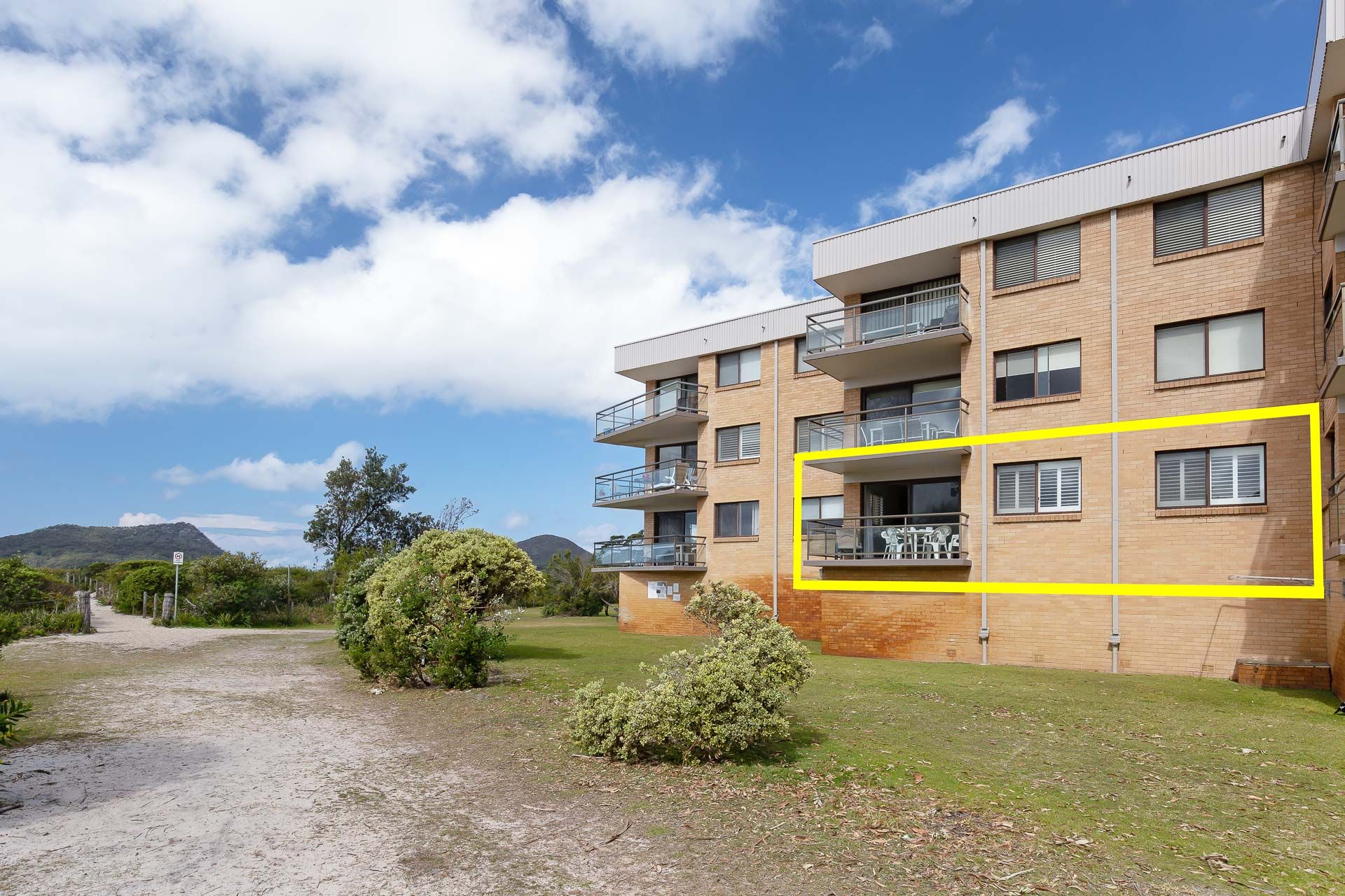 A grassed foreshore separates the Intrepid Building from the white sands of Shoal Bay Beach which is ideal for the kids to play.