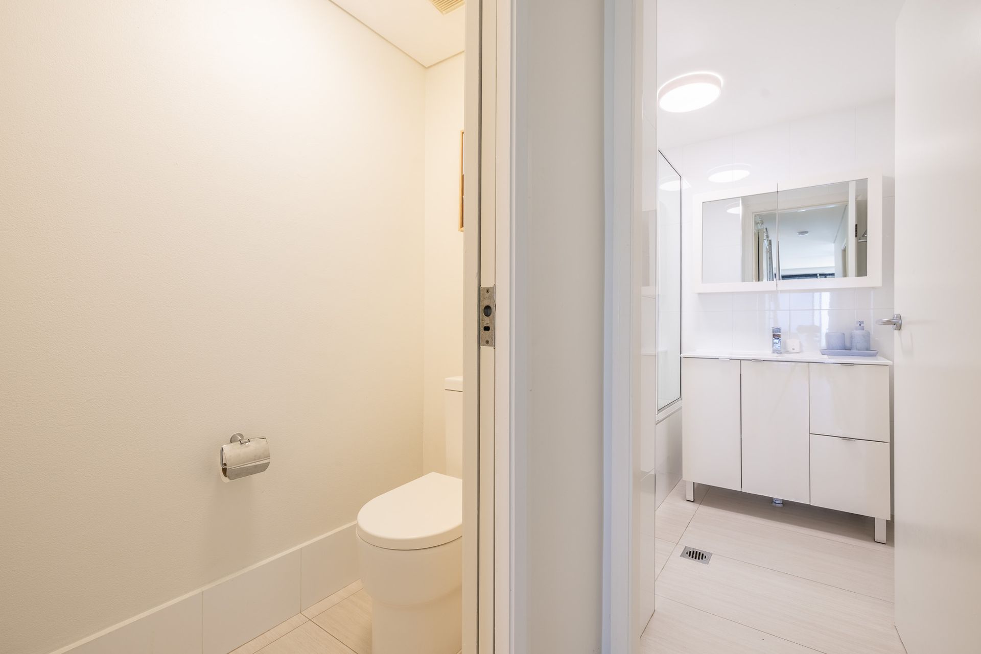 Sliding glass doors take you out onto the covered balcony with a stunning outdoor setting, gas BBQ and the relaxing sounds of the ocean. Very well-equipped stylish kitchen with granite bench-tops, under-bench oven, stove-top, microwave, dishwasher and a family full size fridge and freezer. The main bedroom is also on this level, this room has a king size bed, linen and bed making, and views over the communal courtyard and landscaped grounds, there is also a stunning bathroom with floor to ceiling tiles on this level with a shower, vanity and toilet.