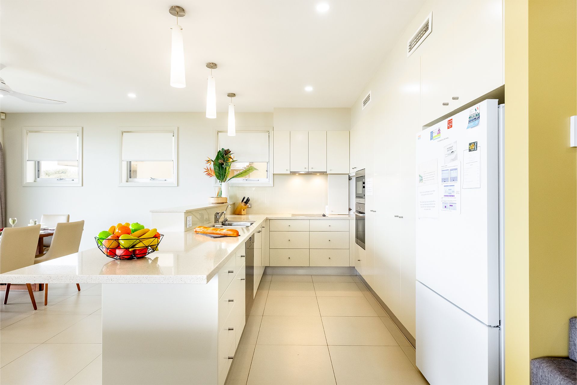 The spacious open-plan living area has mesmerizing ocean views and features a 65-inch big-screen Smart TV, ducted air conditioning to ensure your comfort, free unlimited W-Fi, Premium Foxtel and a sound bar. The kitchen is modern with high end Miele appliances and is fully equipped with complete cooking facilities including a dishwasher, microwave oven, family size fridge/ freezer, electric cook top and under bench oven, elegant stone benchtops and a Breville coffee machine.