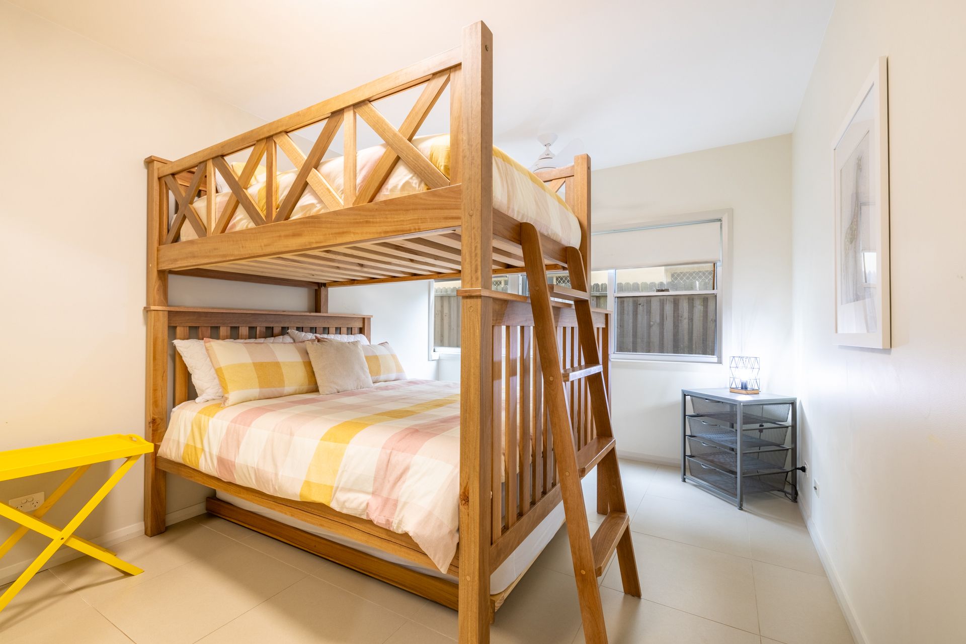 Bedroom 3 (Wing area) – Queen Tri Bunk (Queen below/ King Single above) + Ducted Air Conditioning + Ceiling Fan