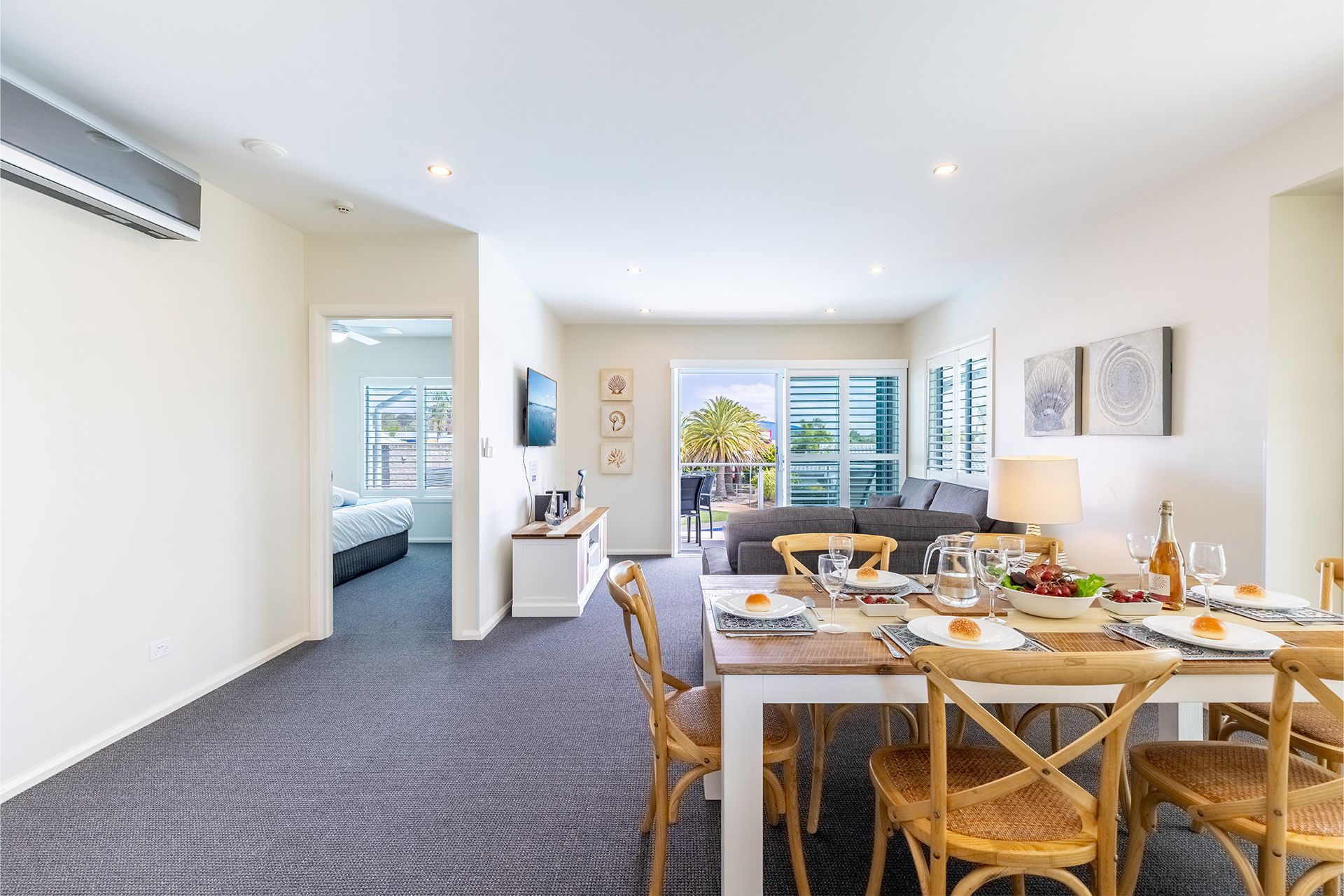 The second bedroom is located in the open plan, air conditioned Studio Apartment that is fitted with two Long Single Beds that can be joined to make a King Bed with linen supplied and beds made. There is also plenty of reading books, a kitchenette, Smart TV with Netflix and DVD player, ceiling fan, ensuite with hair dryer and private balcony overlooking the pool which makes this perfect for couples or singles. As this area is separate from the main apartment we do not recommend young children to be left alone in the studio.