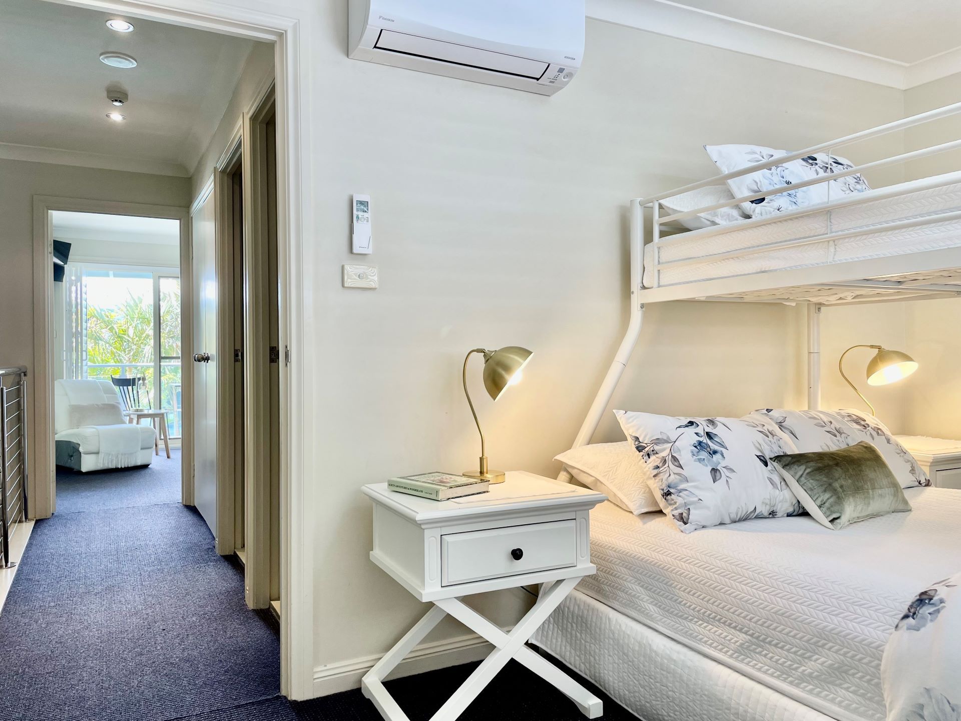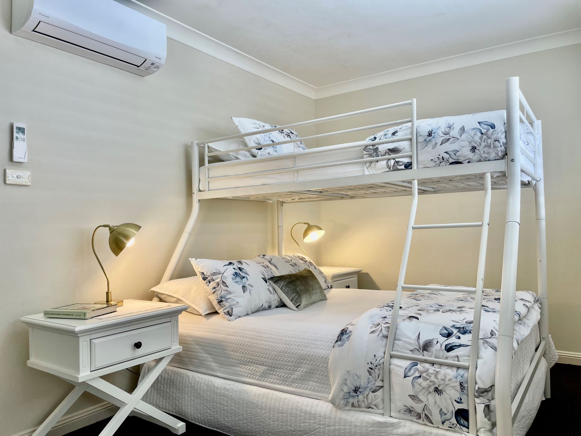 Bedroom 2 - Tri Bunk (double underneath/single above) + Linen + Bed Making + Split System Air Conditioner