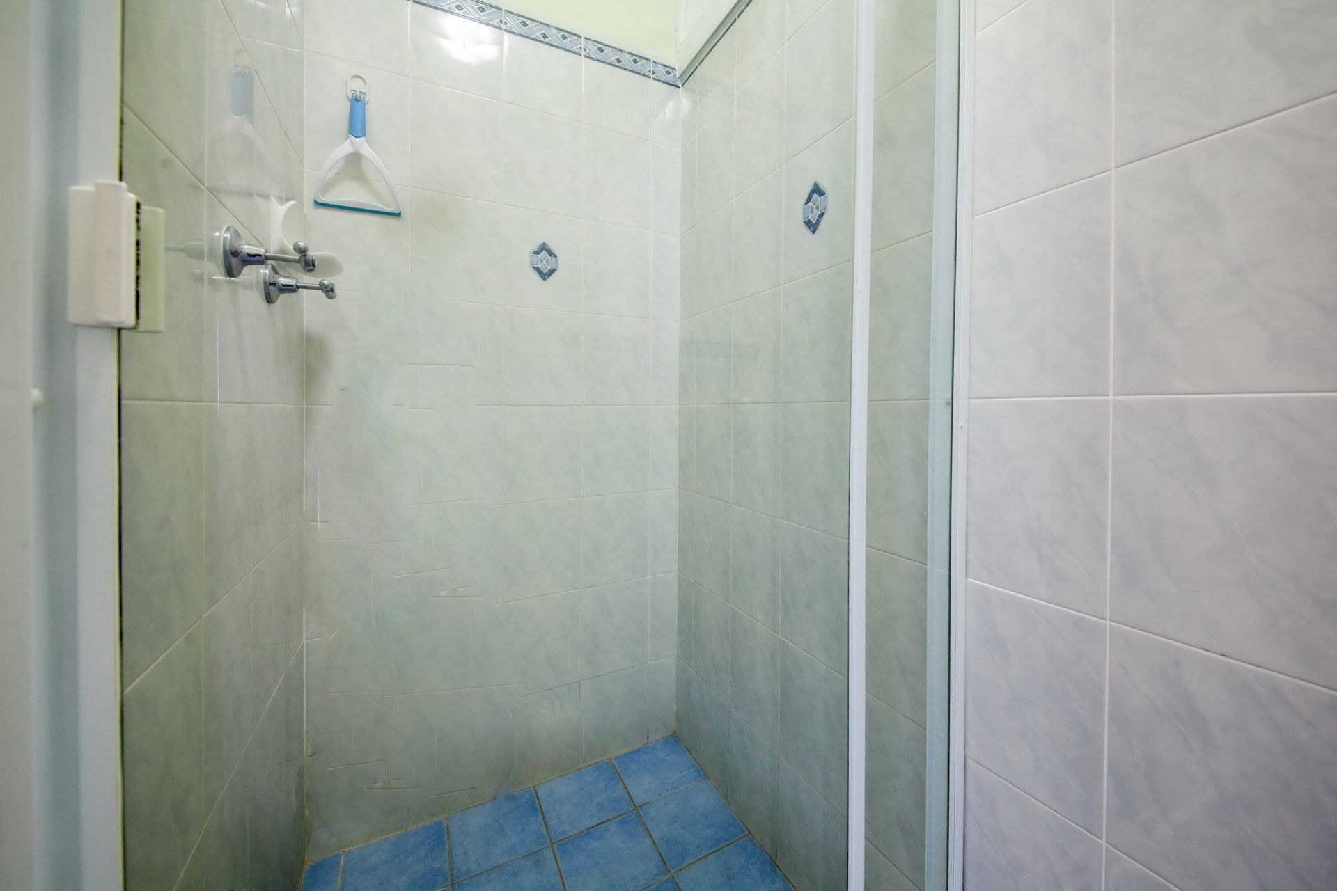 The bedroom is large enough to fit a port-a-cot and it also has a ceiling fan and the second TV. The bathroom has a shower, toilet and vanity and there is an external shared laundry with washing machine and dryer (both coin operated).