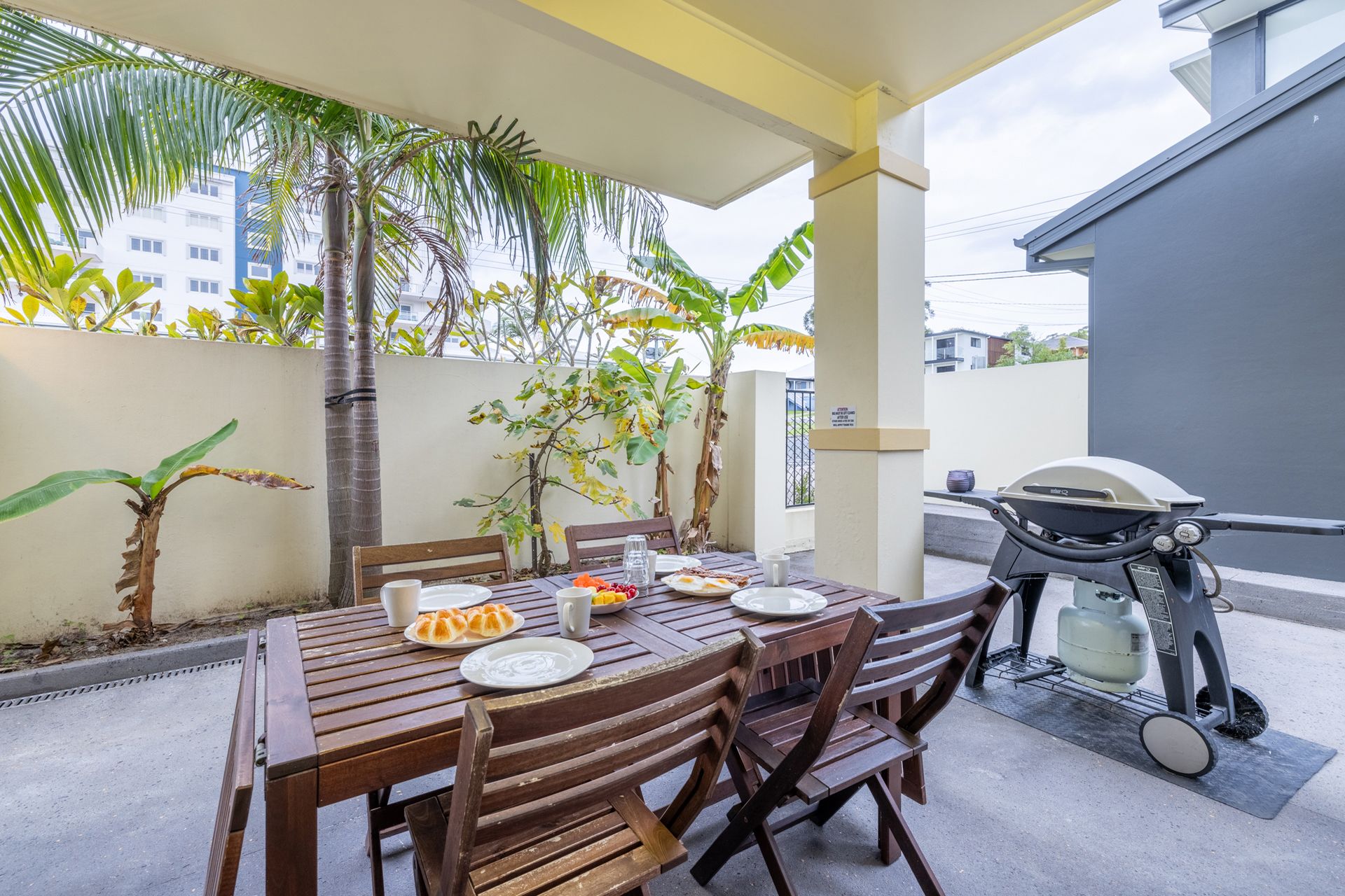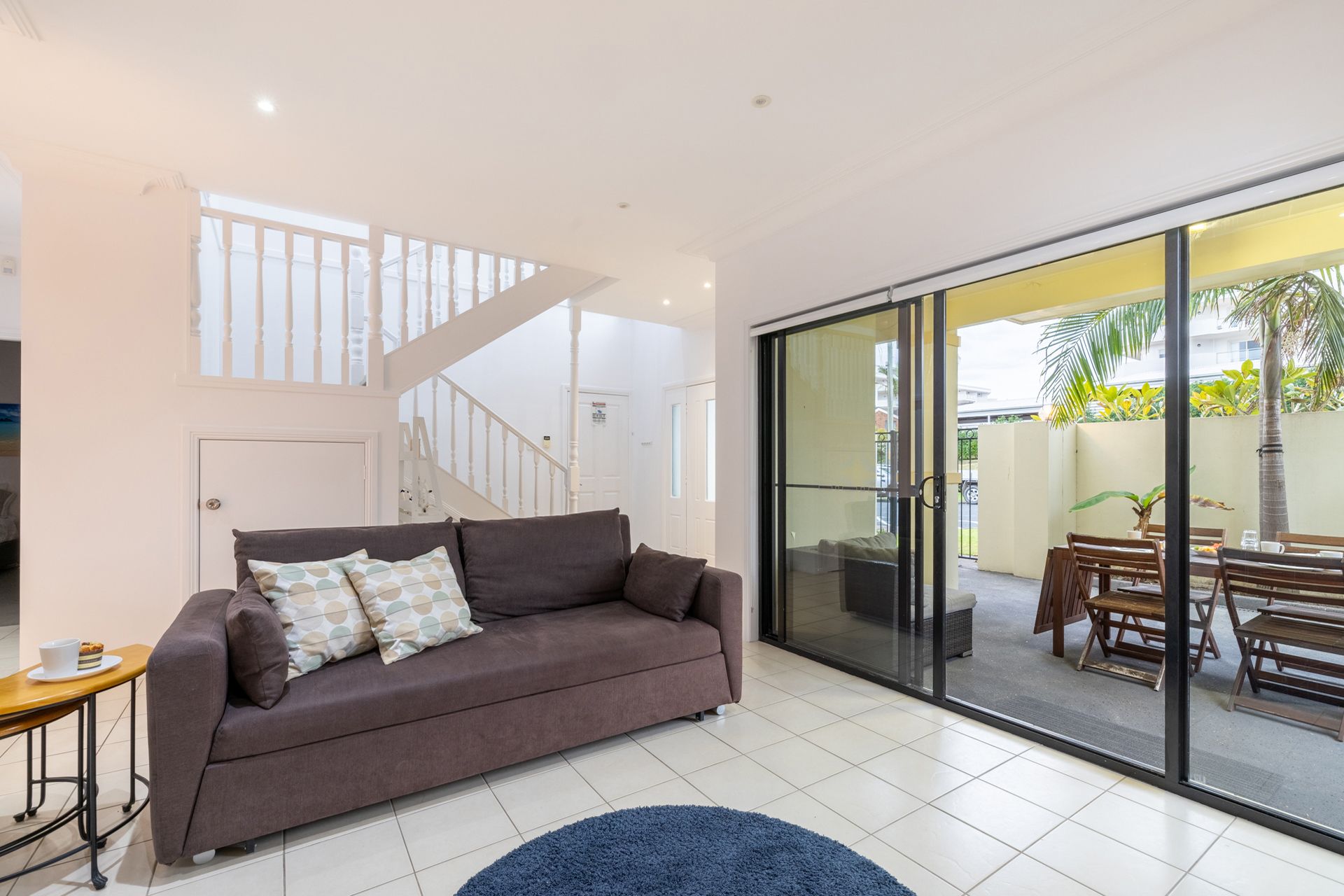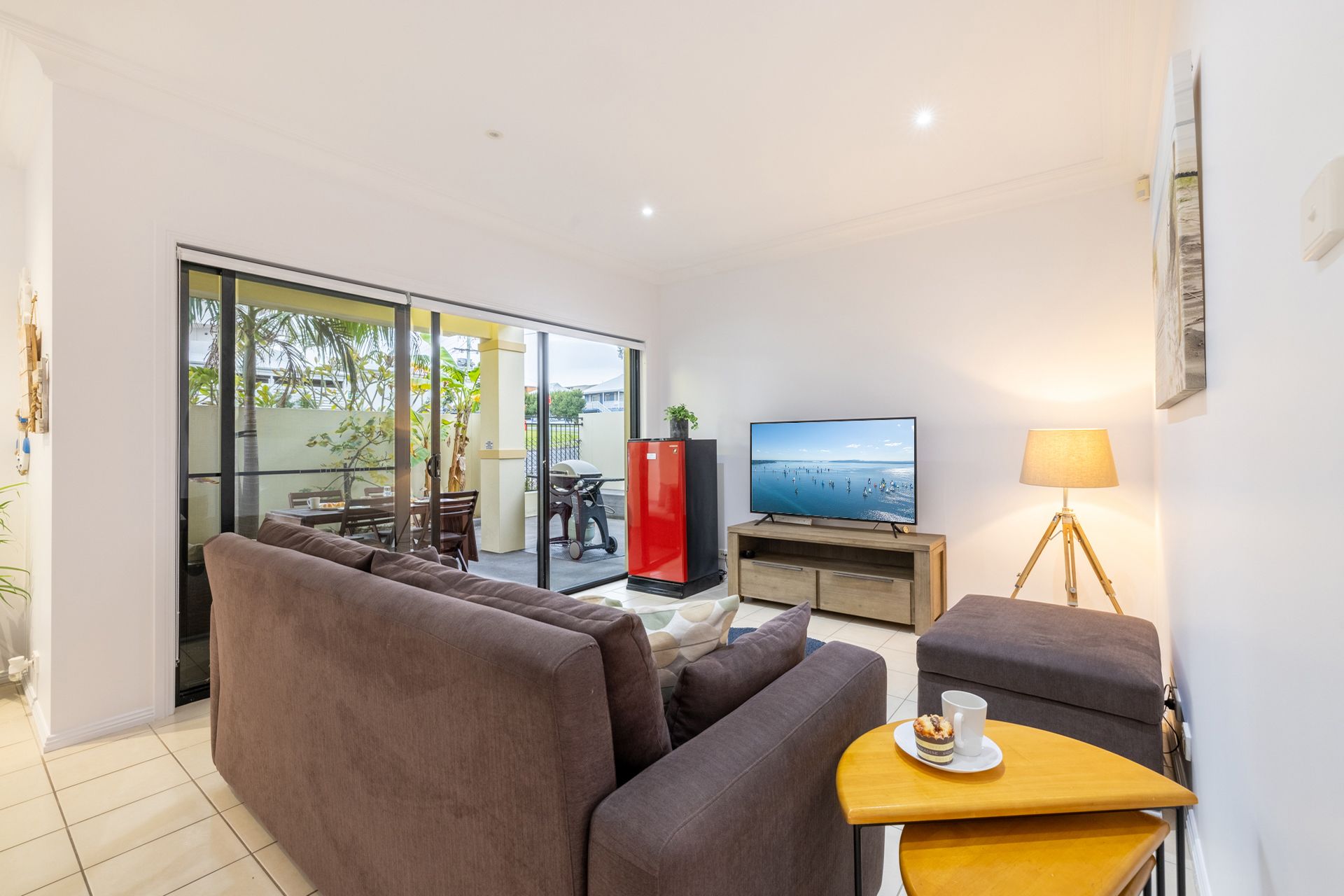 Downstairs is the second and third bedrooms, they both have split system air conditioners with the second room also having a ceiling fan. The main bathroom is also on this level, it has the convenience of a full-size bath, shower, toilet, and vanity. The second living area is also downstairs, it has a large SMART TV and access to an undercover entertaining courtyard area with a Weber gas BBQ and sunlounges.