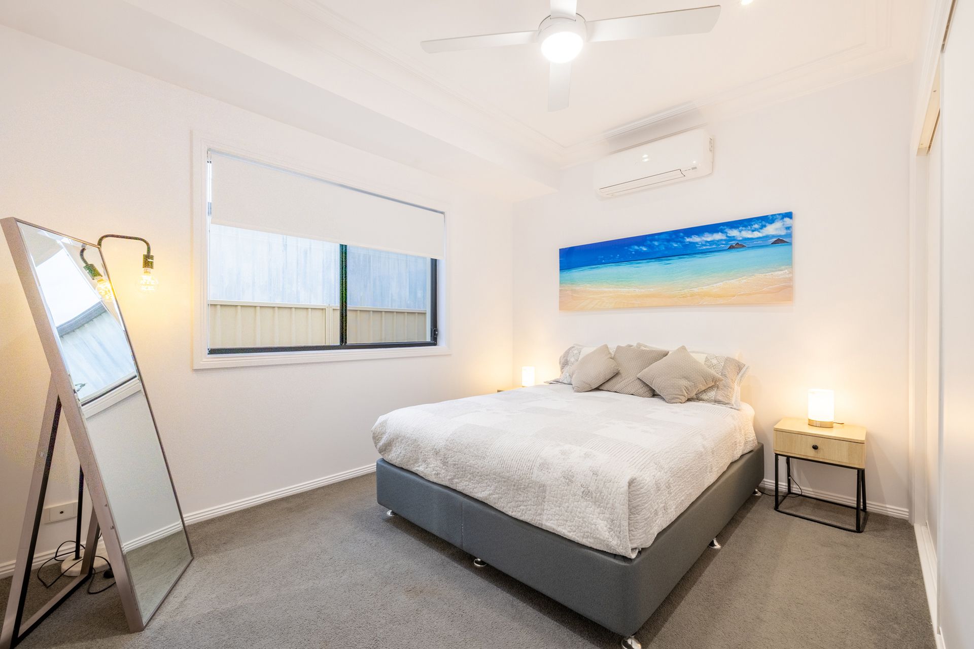 Bedroom 2 (downstairs) - Queen Bed + Split System Air Conditioner + Ceiling Fan