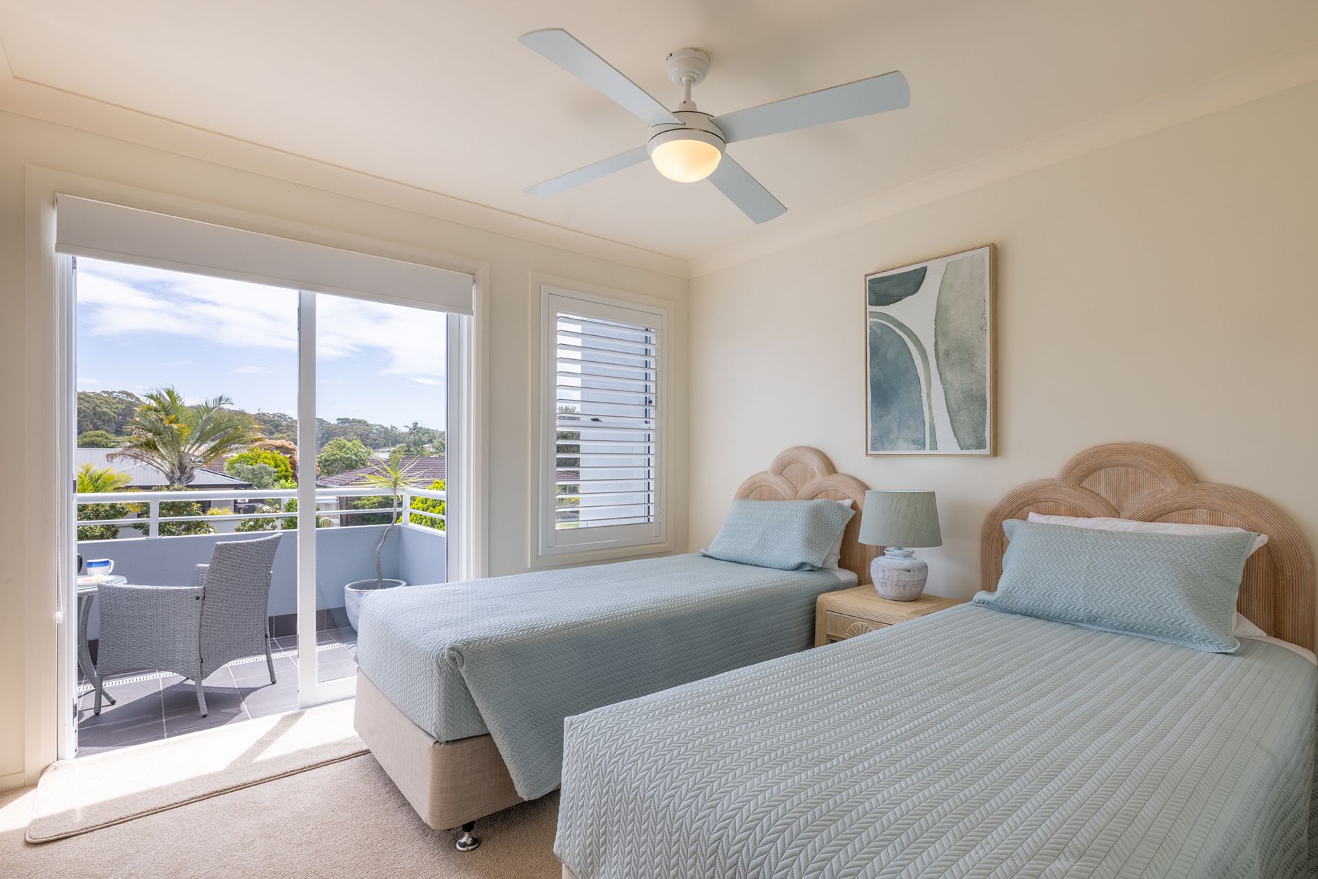 Bedroom 3 (upstairs) – 2 x Single Beds + Ceiling Fan + Balcony Access