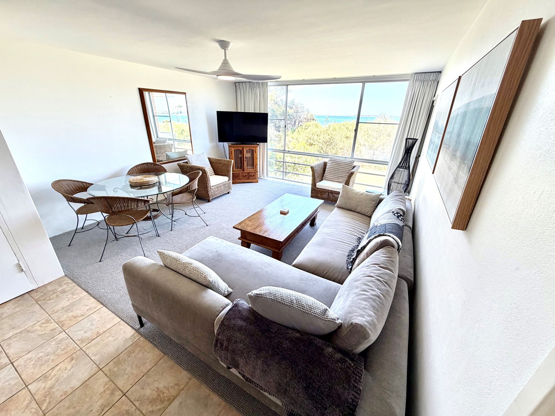 Two bedrooms with the main having floor to ceiling windows to capture the views and access to the balcony to take in the sea breezes. The bathroom has been fully renovated and has a walk-in shower with rainwater shower head, toilet, and vanity. The unit provides an internal laundry with a top loader washing machine and dryer and one narrow undercover car space for a small vehicle, there is also street parking available.