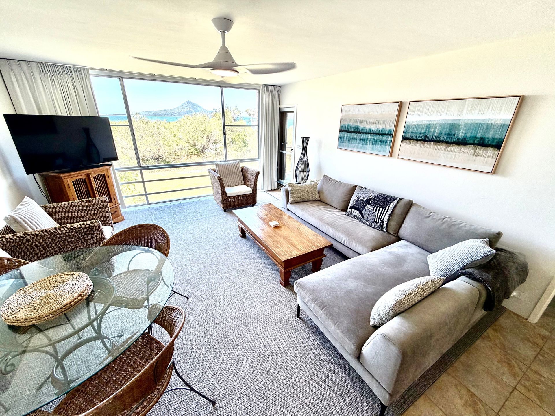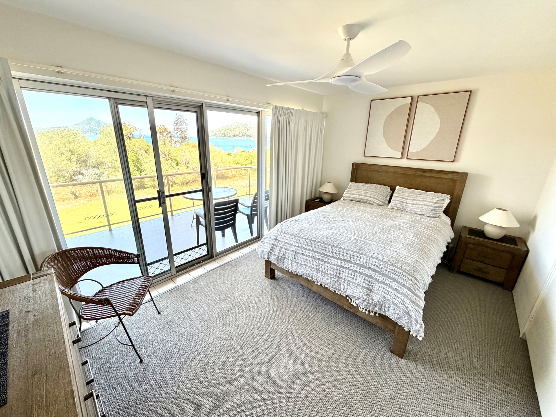 Unit 2 is on the first floor and only has 15 steps from the car parking to the front door. The unit has views across Shoal Bay and out the headlands from the balcony, living area and main bedroom.