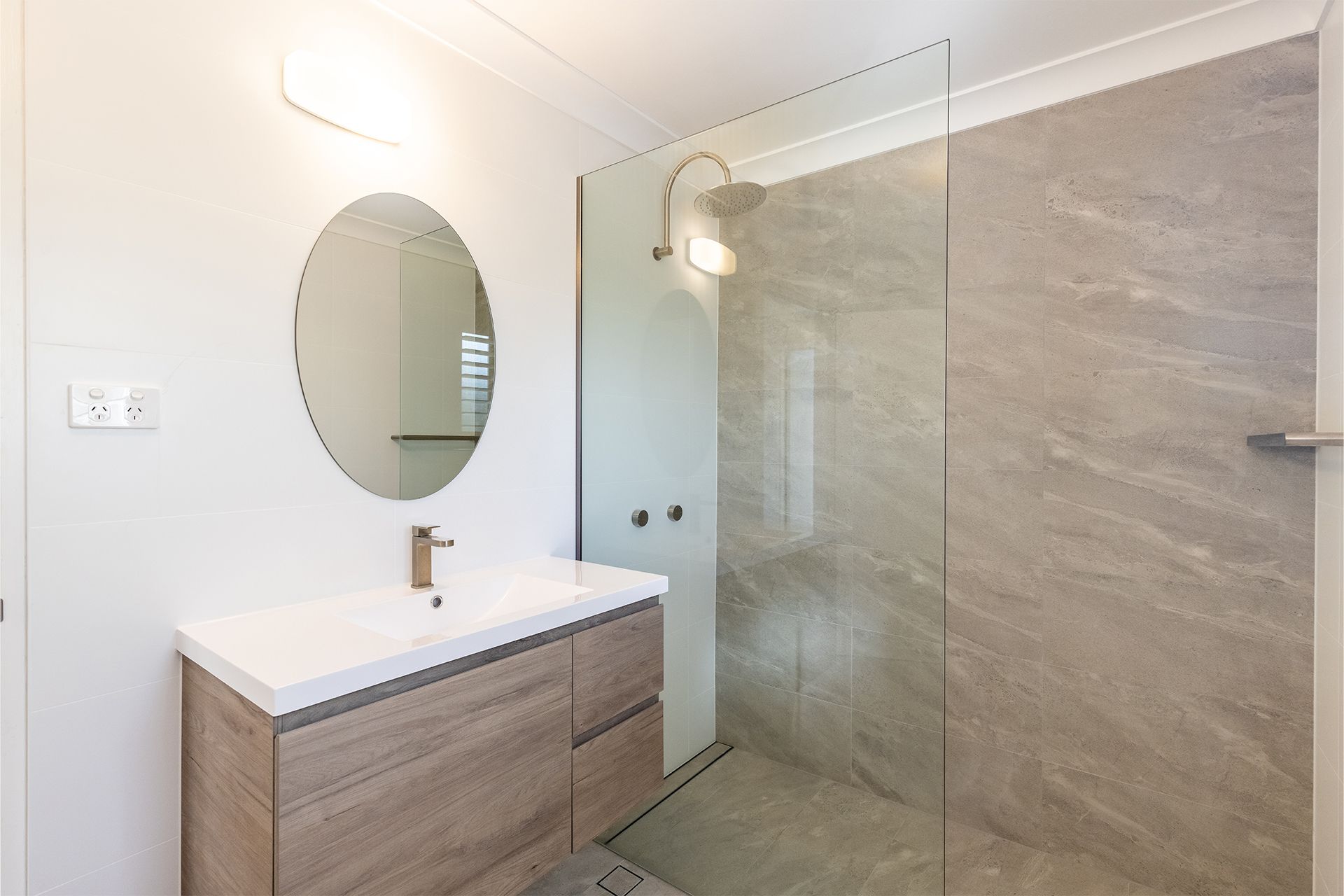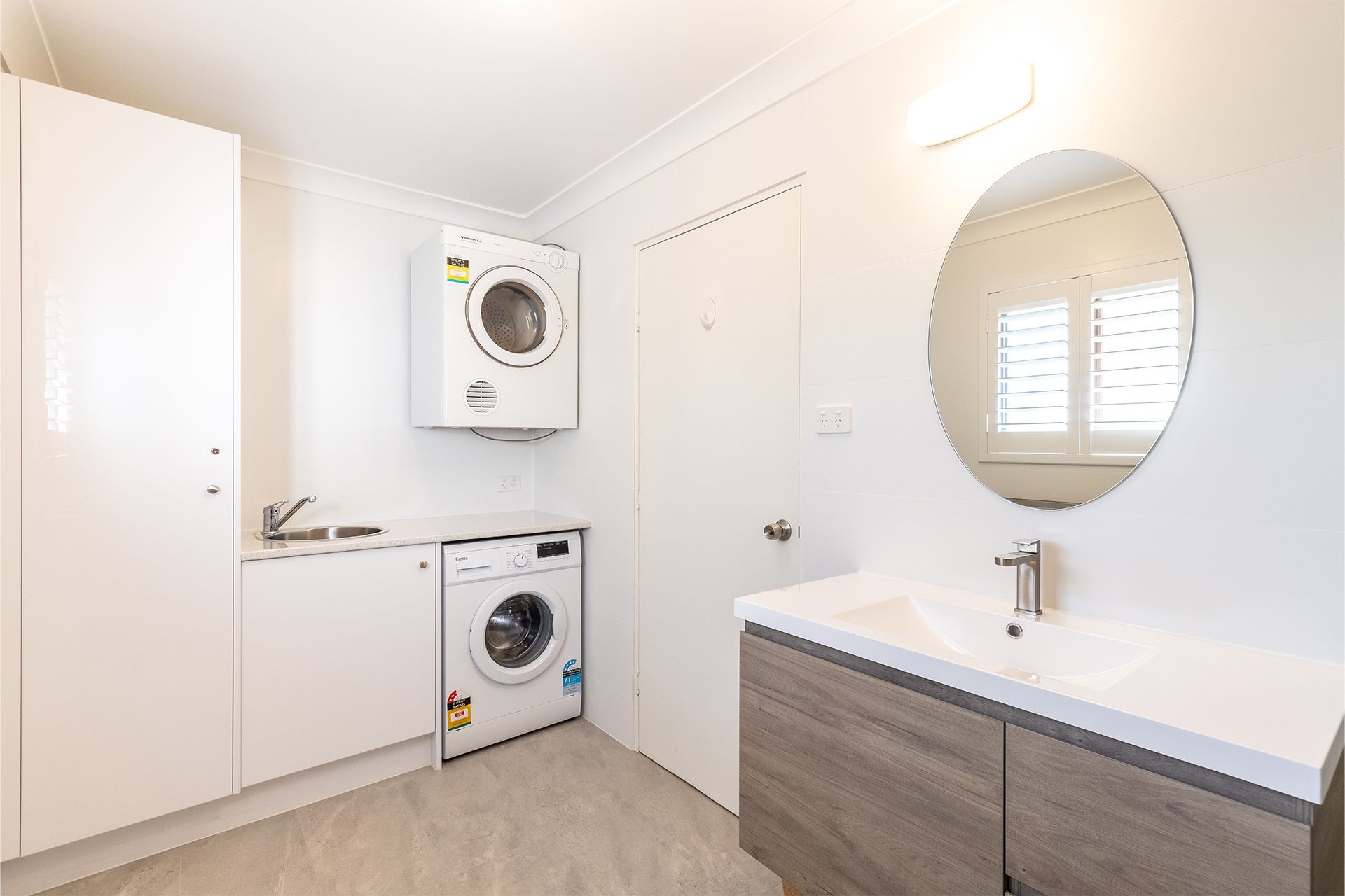 Two bedrooms both with ceiling fans and built in robes, the main bedroom also has access to the front balcony to allow the breeze to flow through. The bathroom is completely renovated and has a rainwater shower, vanity, front loader washing machine and dryer. The toilet is located separately to the bathroom.