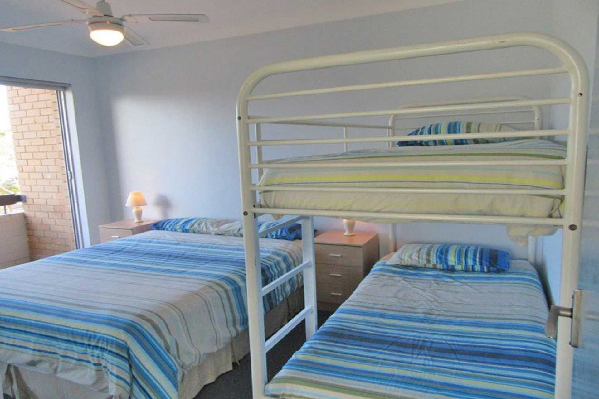 Bedroom 2 - Queen Bed + Single Bunk + access to balcony