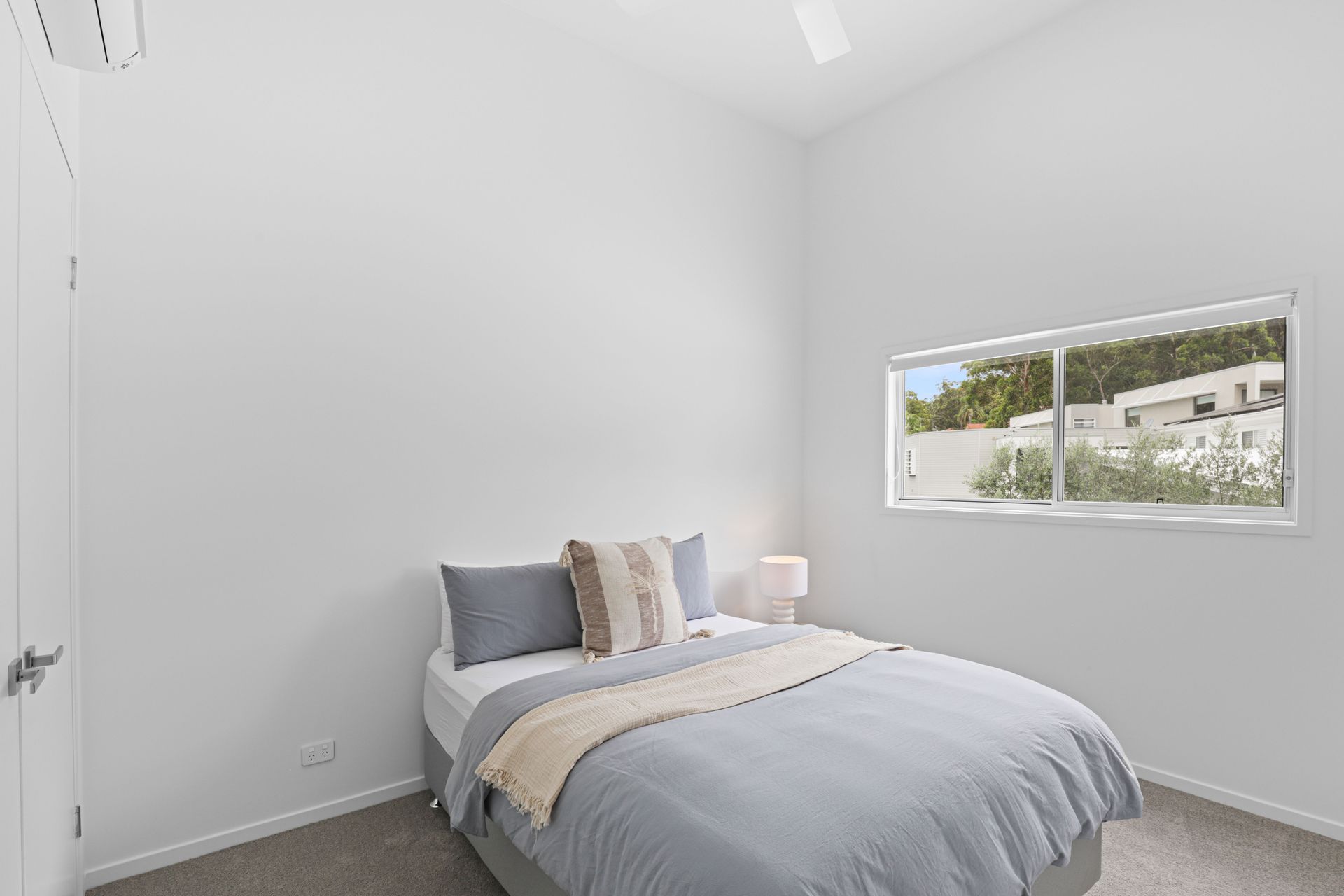 Room 4 - King Single Bed + Split System Air Conditioner + Ceiling Fan + Linen + Bed Making + Access to balcony